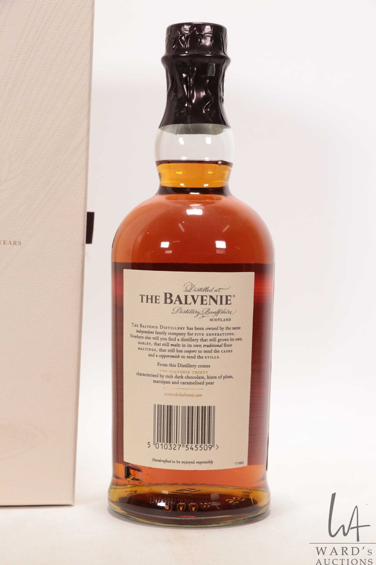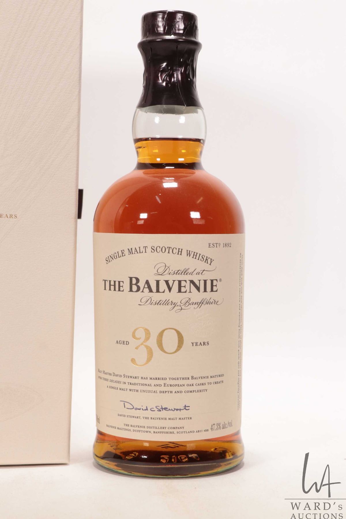 30 Year Balvenie/ Single malt Scotch whisky / Speyside Scotland/ Distilled in bourbon and sherry oak/ 47.3% ABV Note: Alcohol cannot be insured by any courier in Canada. Local pick up is recommended. Canadian bidders only