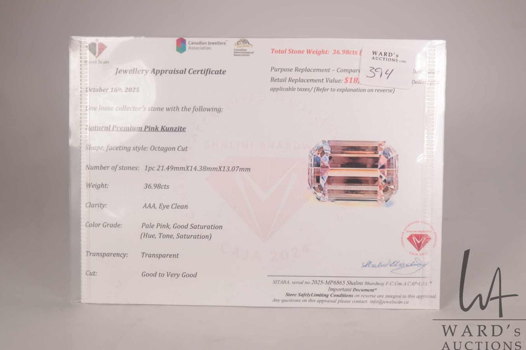 36.98 ct. pink Kuzite octagonal cut gemstone with certificate provided by consignor