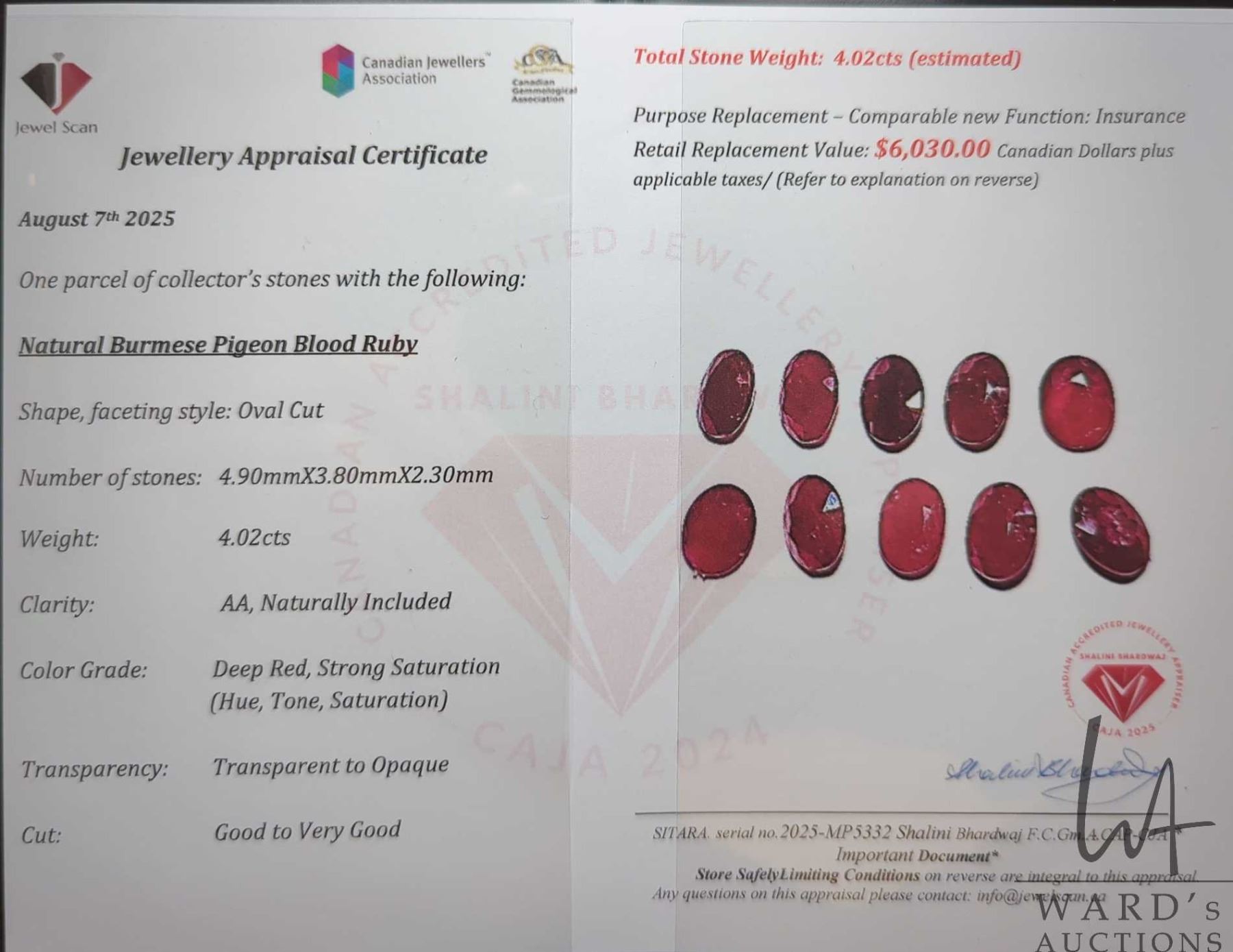 4.02 ct certified pegeon Blood Ruby gemstone, Certificate provided by consignor