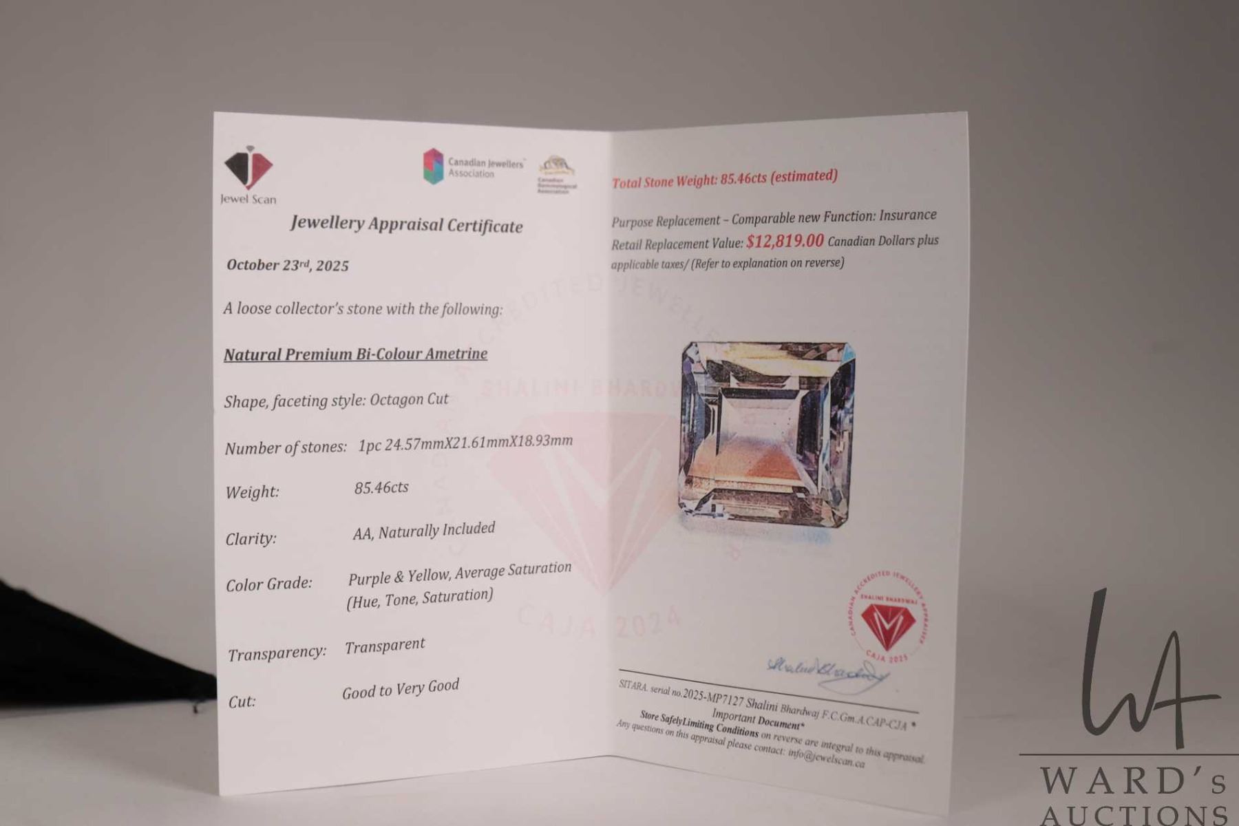 85.46 ct. octagonal shape Bi-colour Ametrine gemstone with certificate provided by consignor