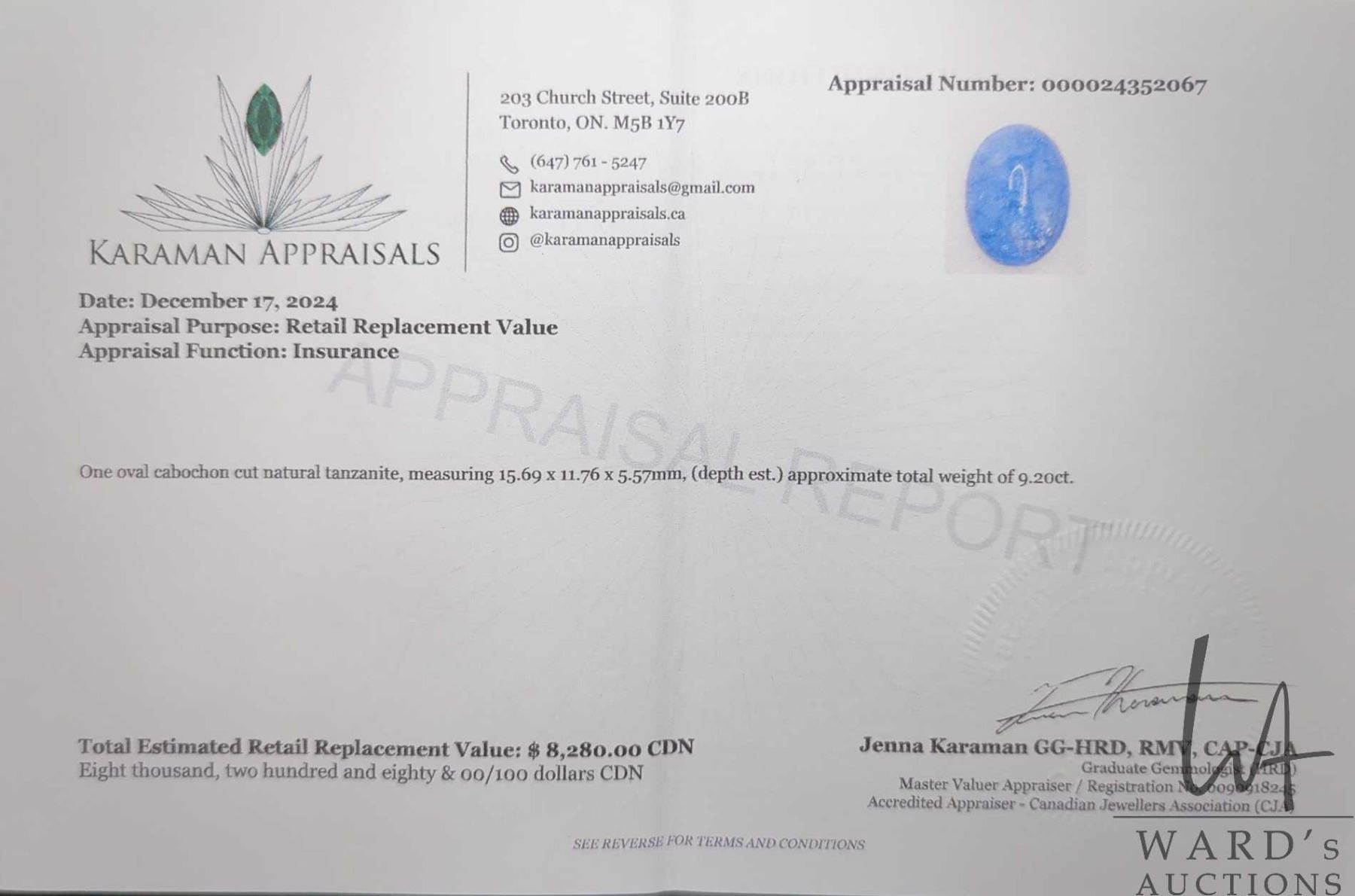 9.2 ct Certified Tanzanite Gemstone with certificate provided by consignor