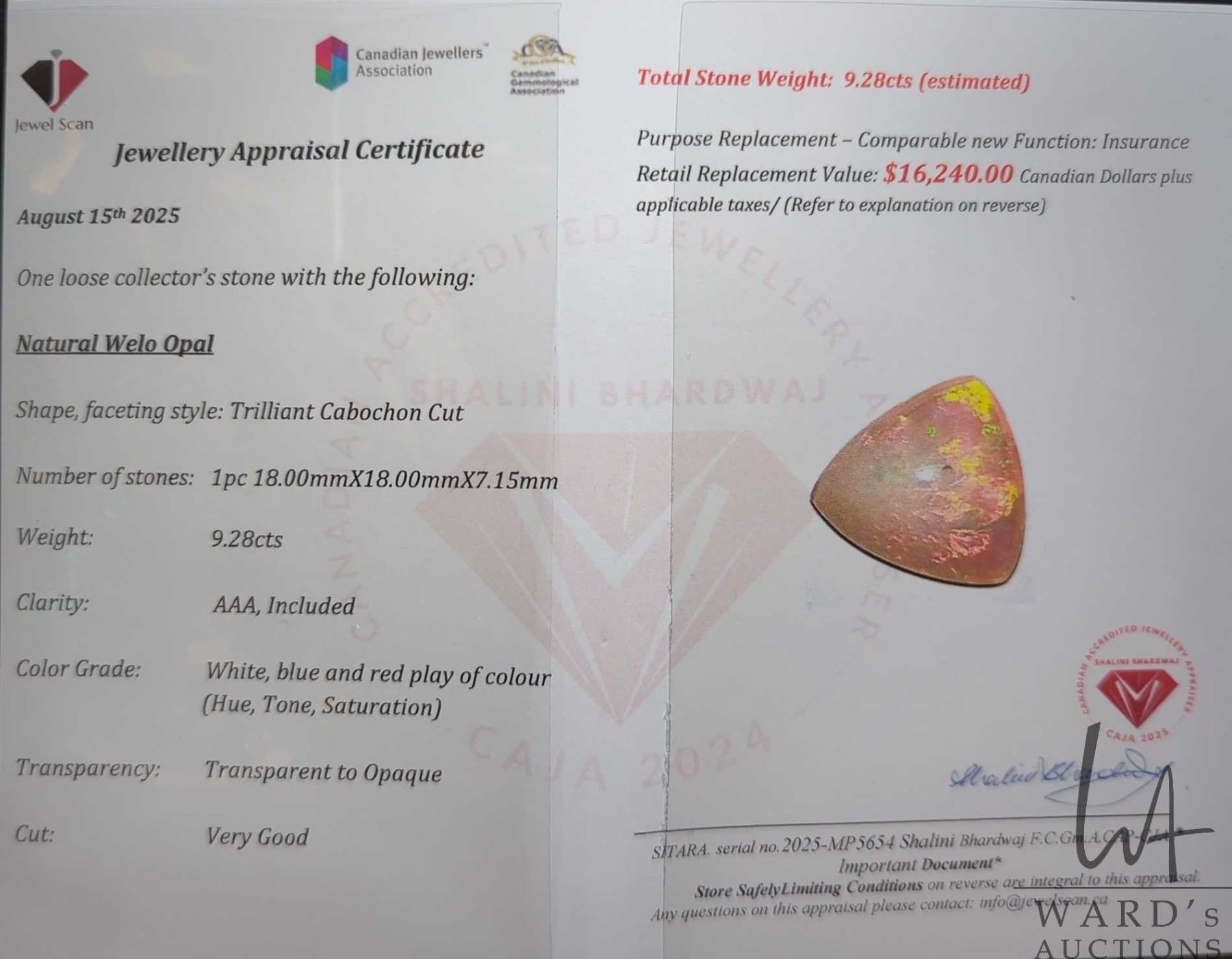 9.28 ct certified Opal gemstone, Certificate provided by consignor