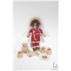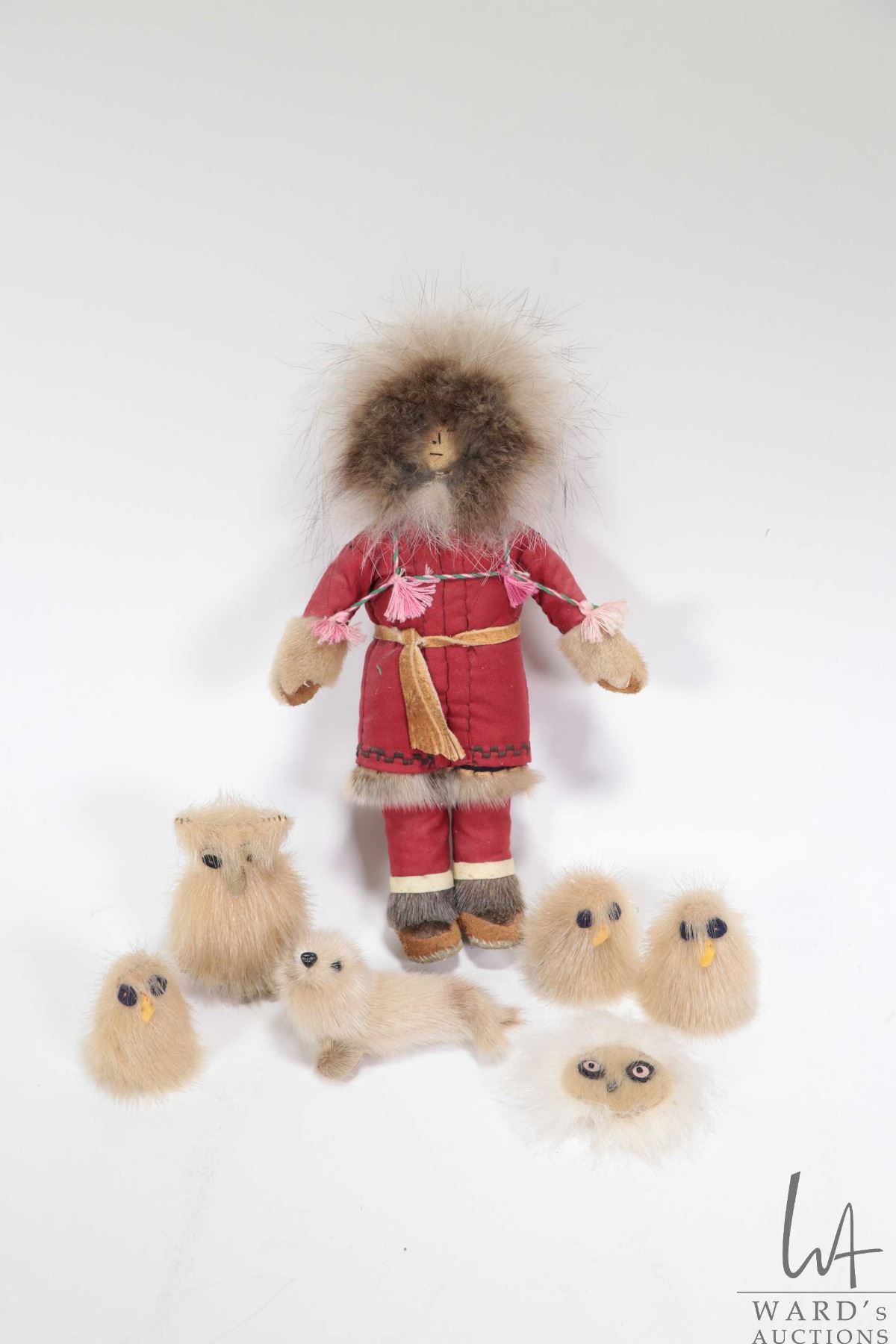9" Inuit doll with winter parka w/ seal skin accents, 5 seal skin animals and a seal skin brooch