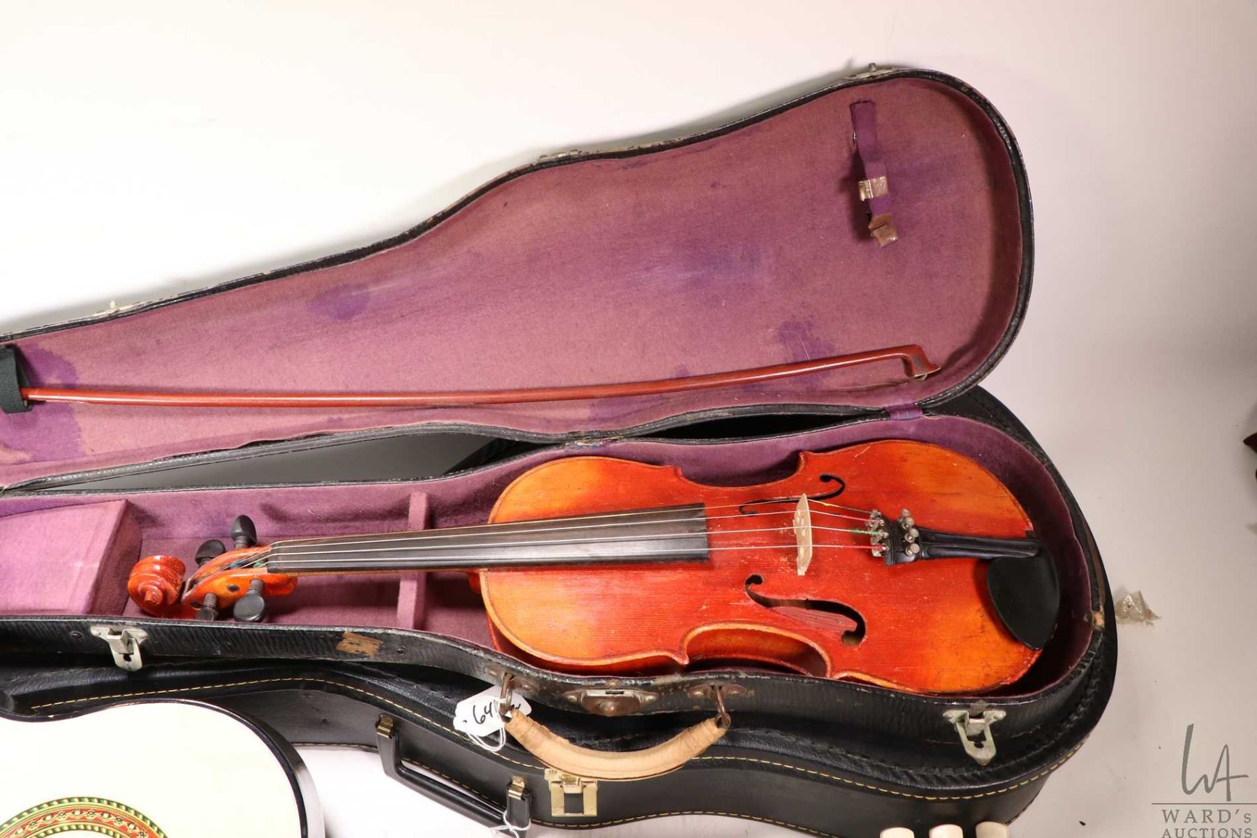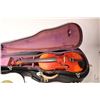 A Kay model K100 junior guitar in fitted hard case and a violin in fitted case with bow
