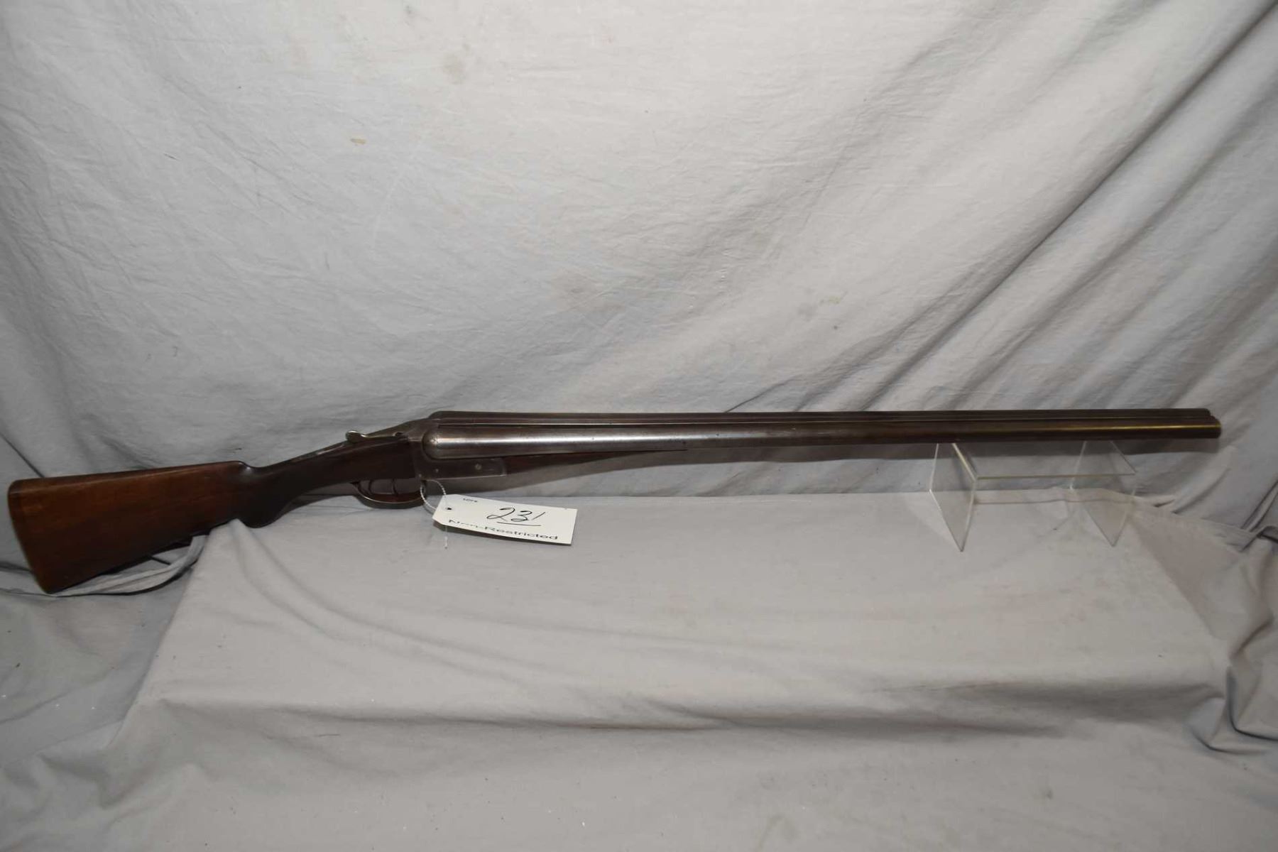 A. Ward Thompson ( Middleborough ) Model S x S Hammerless .12 Ga 2 1/2" Side By Side Shotgun w/ 30" bbls [ fading blue finish turning brown, lightly engraved receiver, double trigger extractor, rounded checkered pistol grip stock, with grooved wooden butt plate, chip at right side behind receiver, checkered forend with metal tip insert, has British Proofs Note: some chips to forend and glued repair ] Ser # 1295