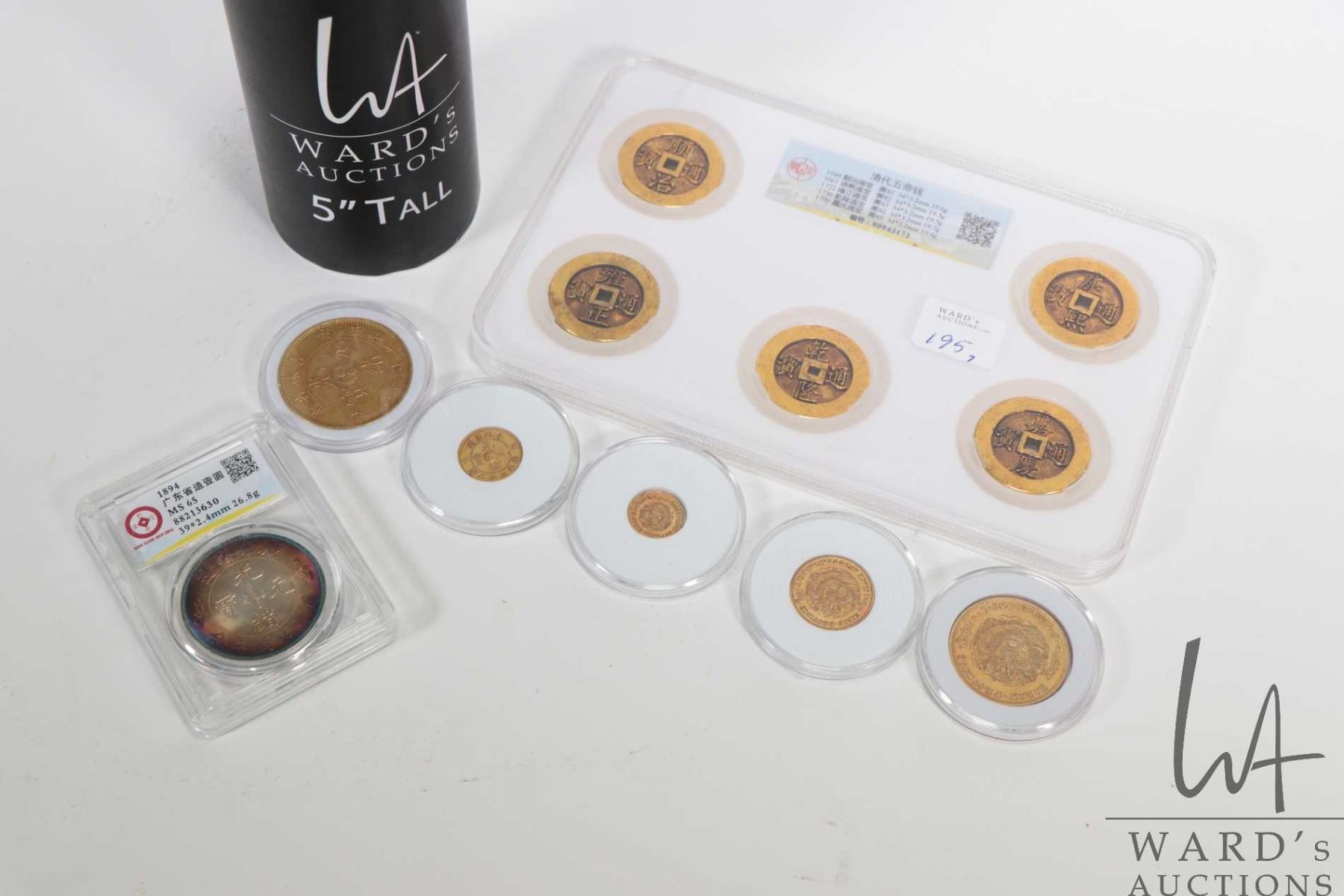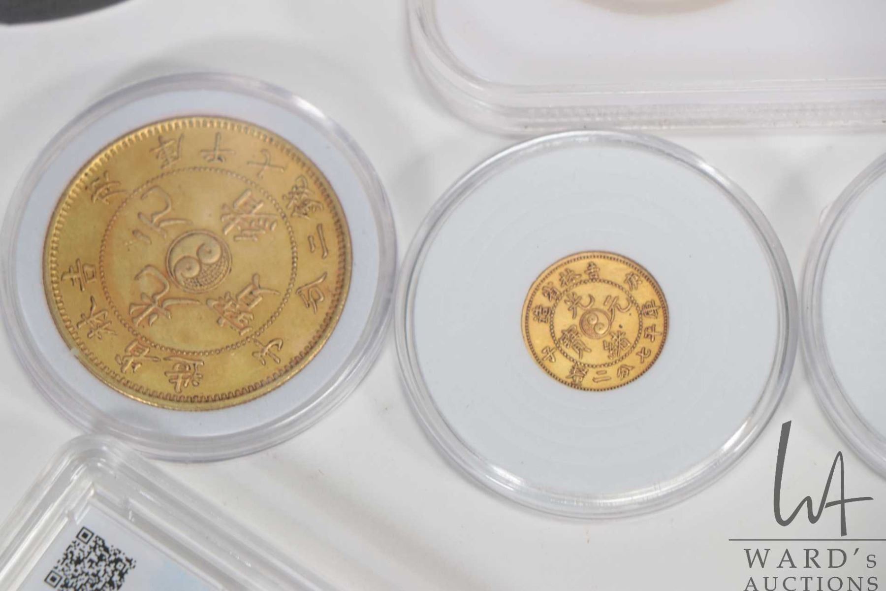 A collection of six cased coin sets and a sealed case of five Imperial coins