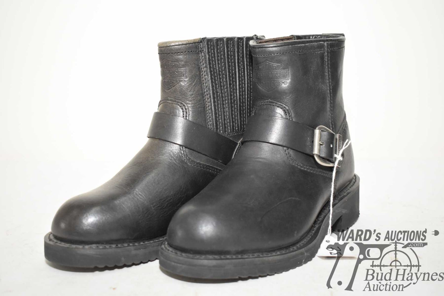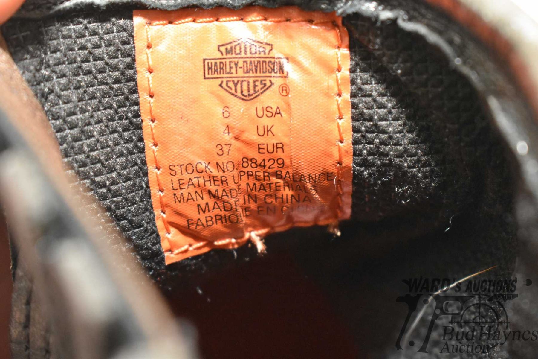 A pair of womens size 6 slip on leather Harley Davidson boots