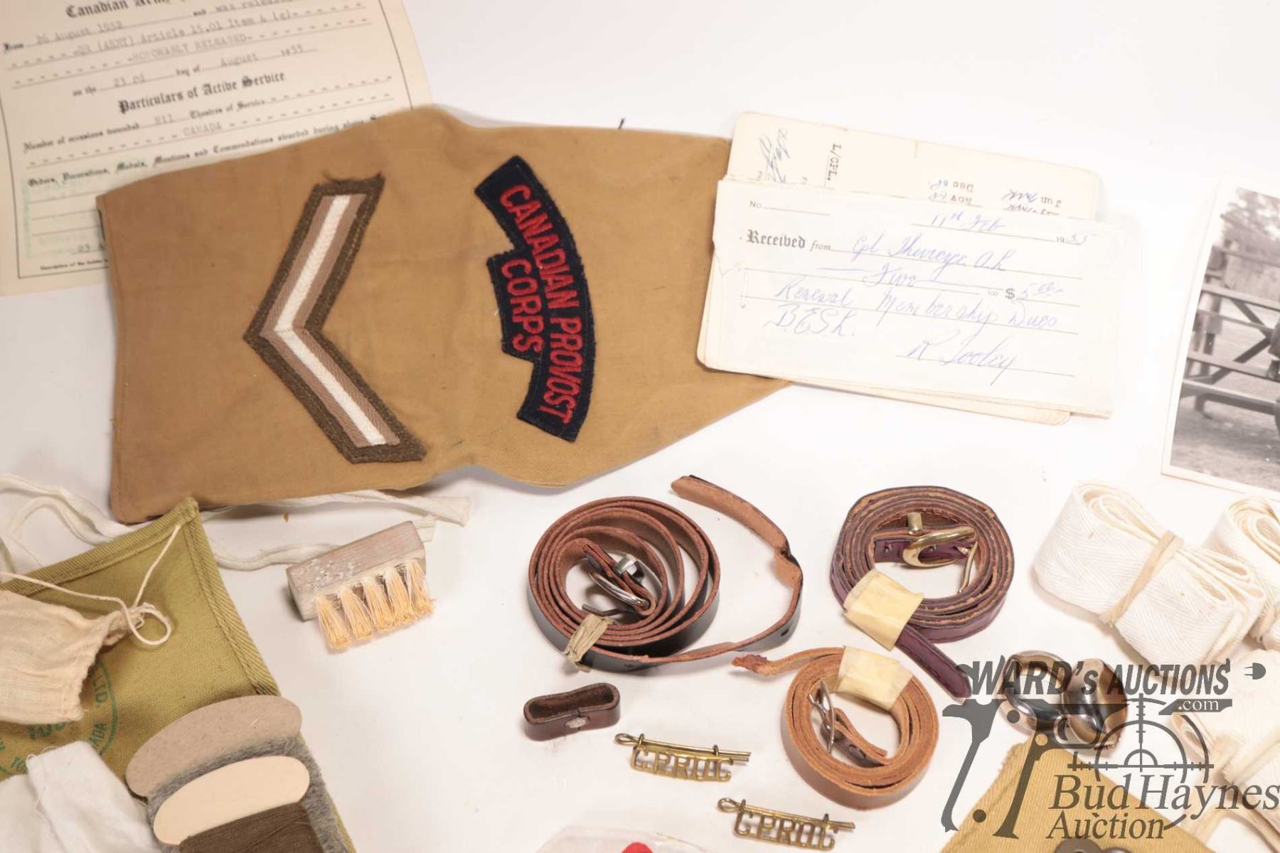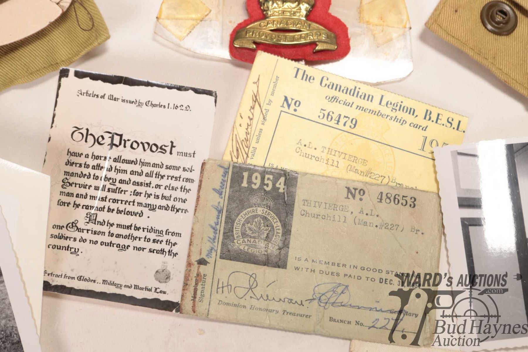A selection of military WWII uniform, accessories and ephemera from Corporal Andrew Lionel Thiverge