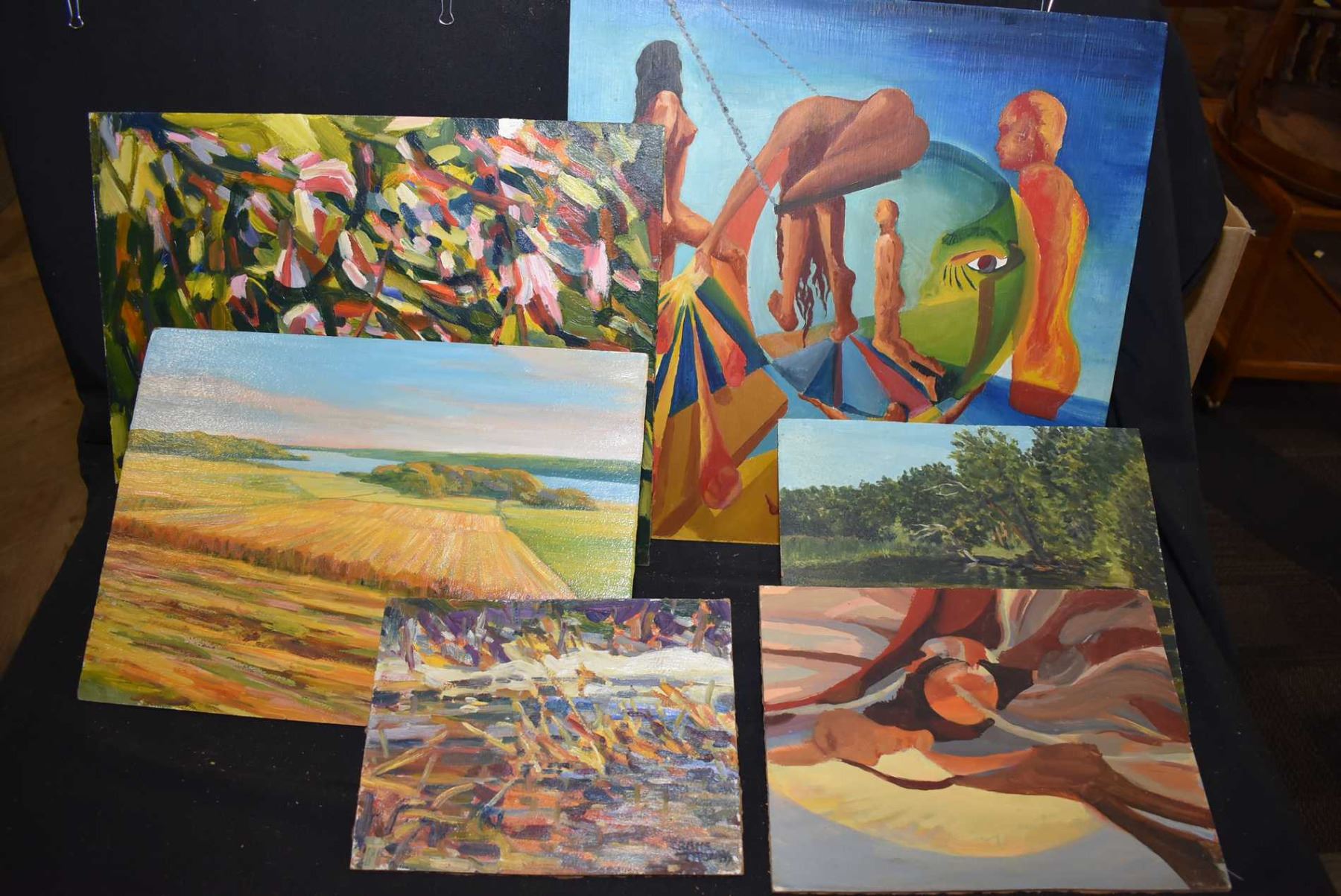 A selection of original acrylic on board paintings by artist Crane Thomas, consigned by the family,