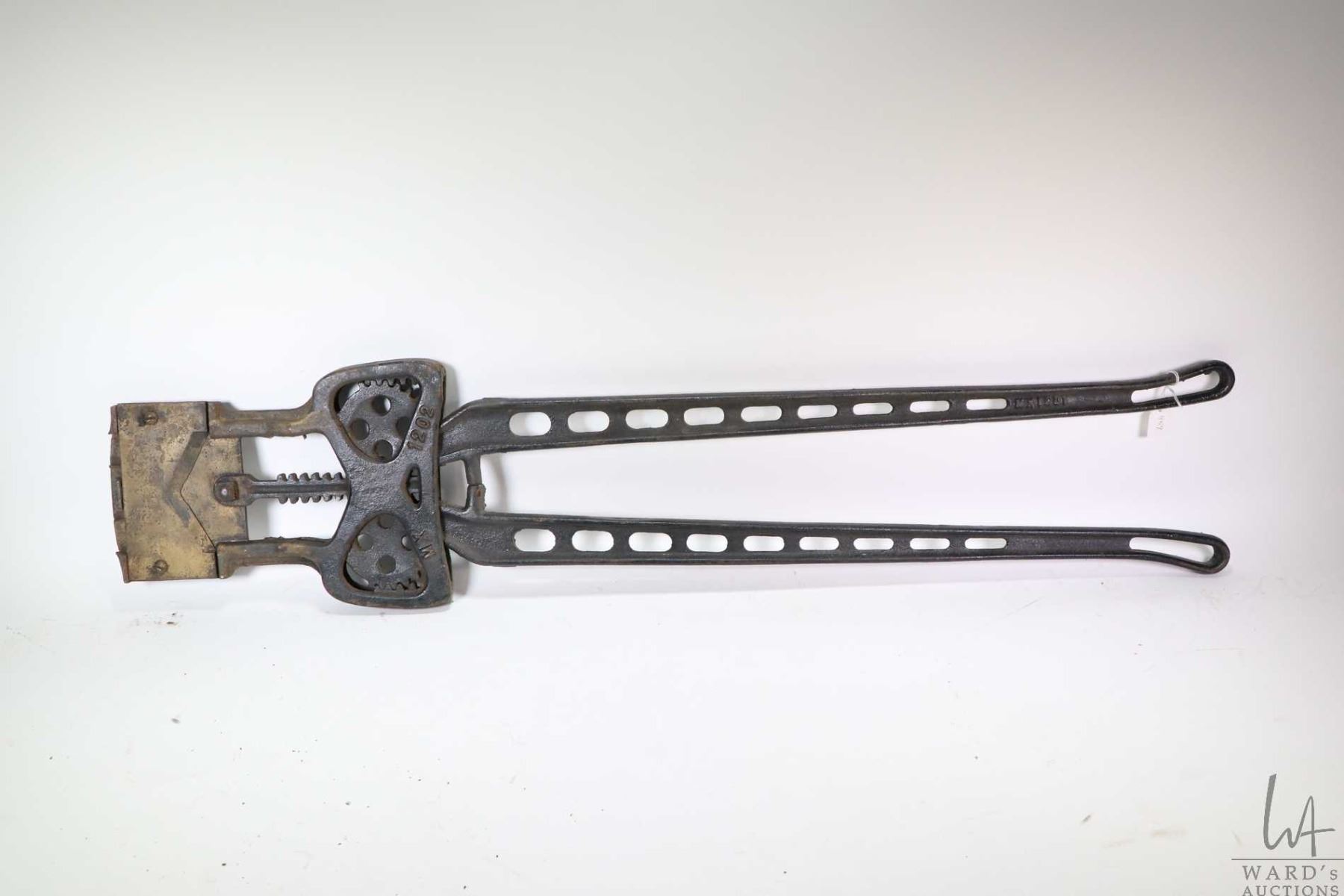 A set of vintage cattle dehorning shears marked MX 1202, 39" in length