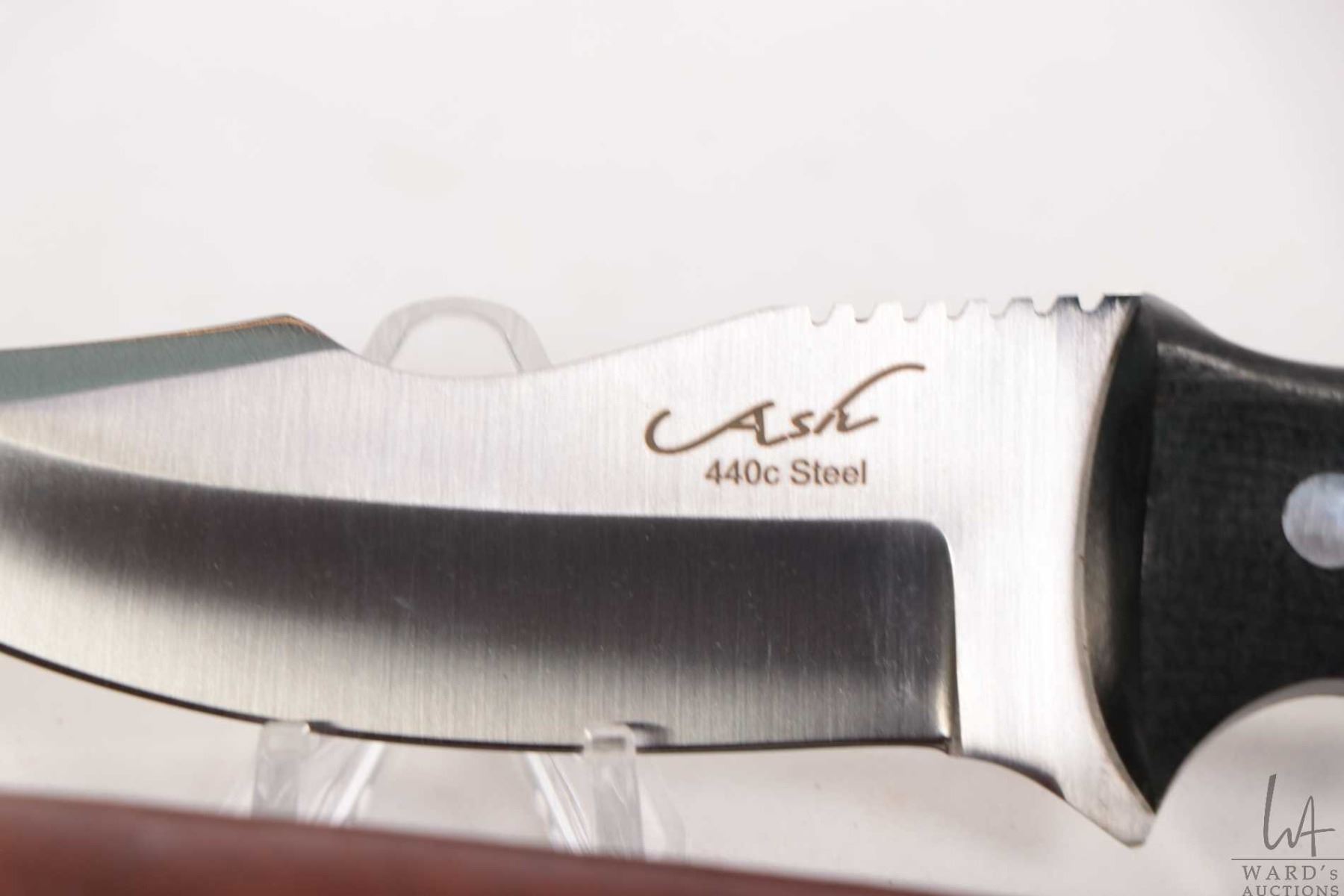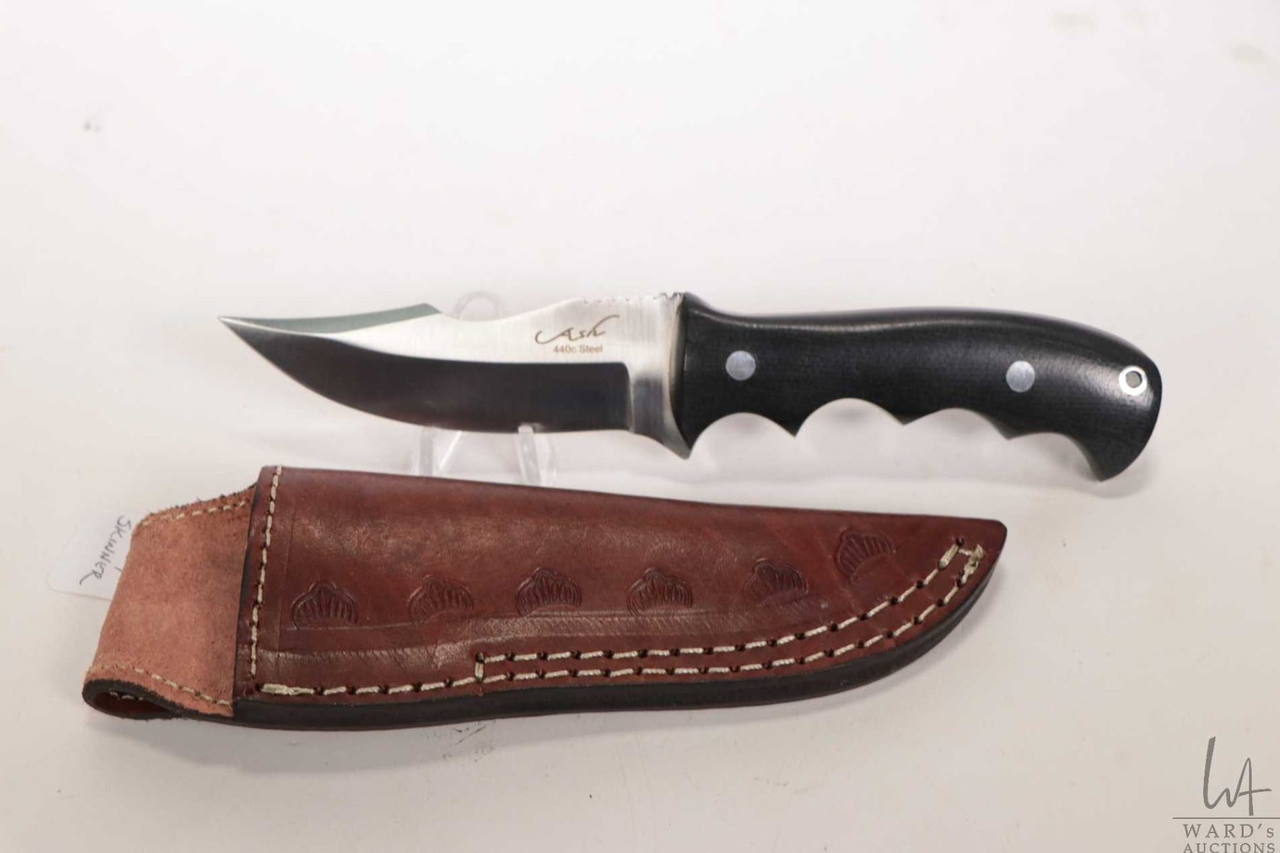 ASH custom skinner 4 1/2" blade, 440C steel with carbon fibre handle and custom leather sheath