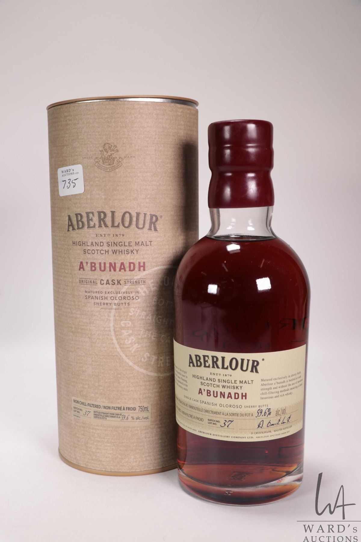 Aberlour/ a' bundah/ Batch 37/ Single Speyside Malt/ Scotch Whisky/ Bottld 2011/ 750ml/ 59.6% ABV Note: Alcohol cannot be insured by any courier in Canada. Local pick up recommended. Canadian bidders only.