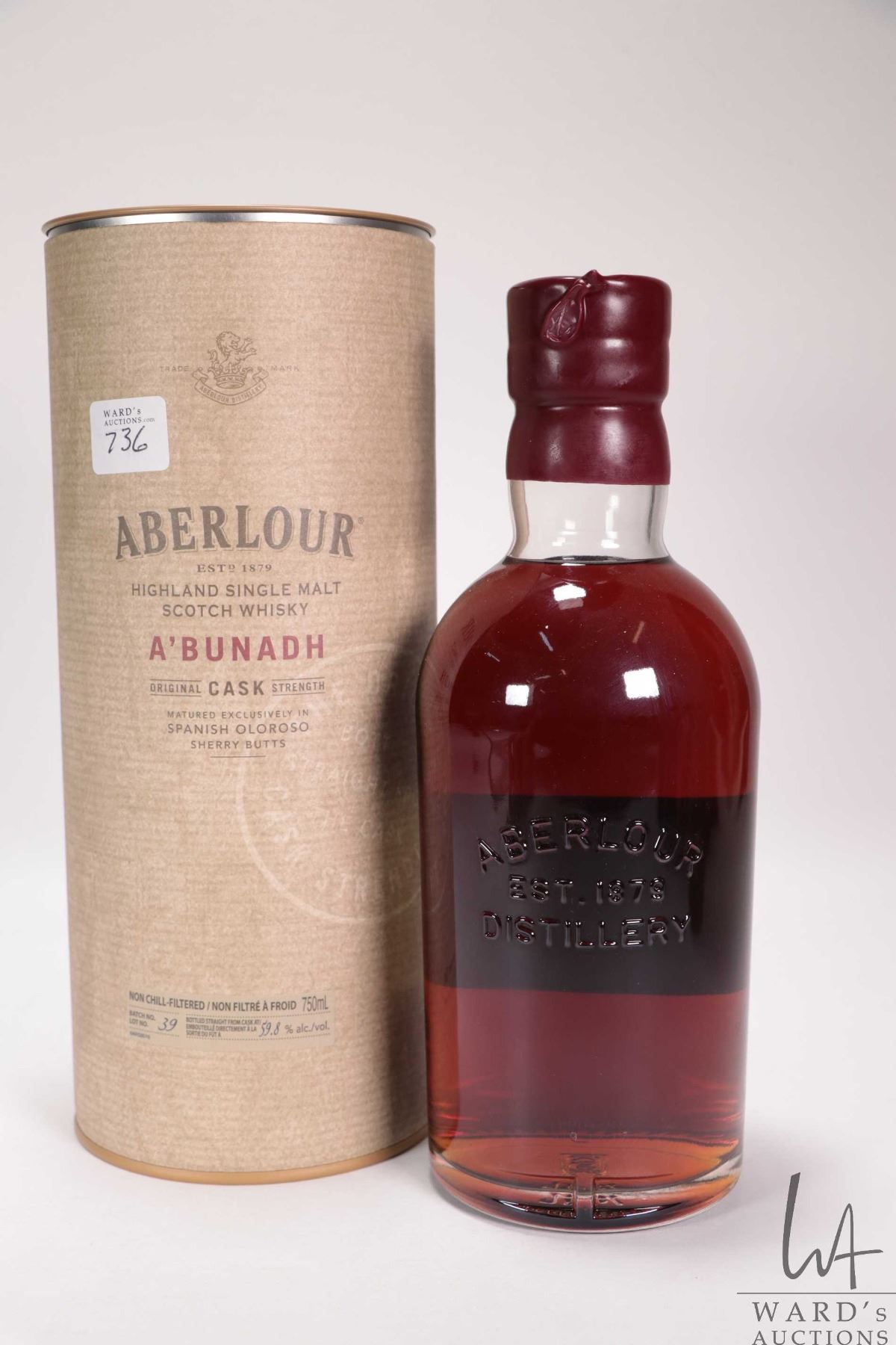 Aberlour/ a' bundah/ Batch 39/ Single Speyside Malt/ Scotch Whisky/ Bottld 2012/ 750ml/ 59.8% ABV Note: Alcohol cannot be insured by any courier in Canada. Local pick up recommended. Canadian bidders only.