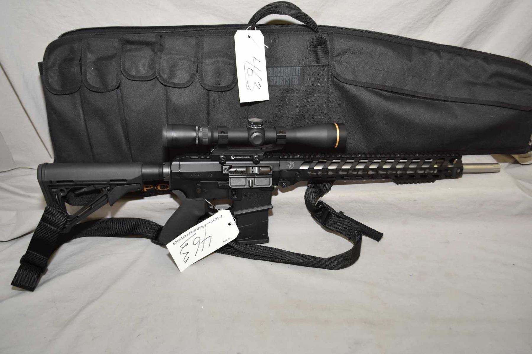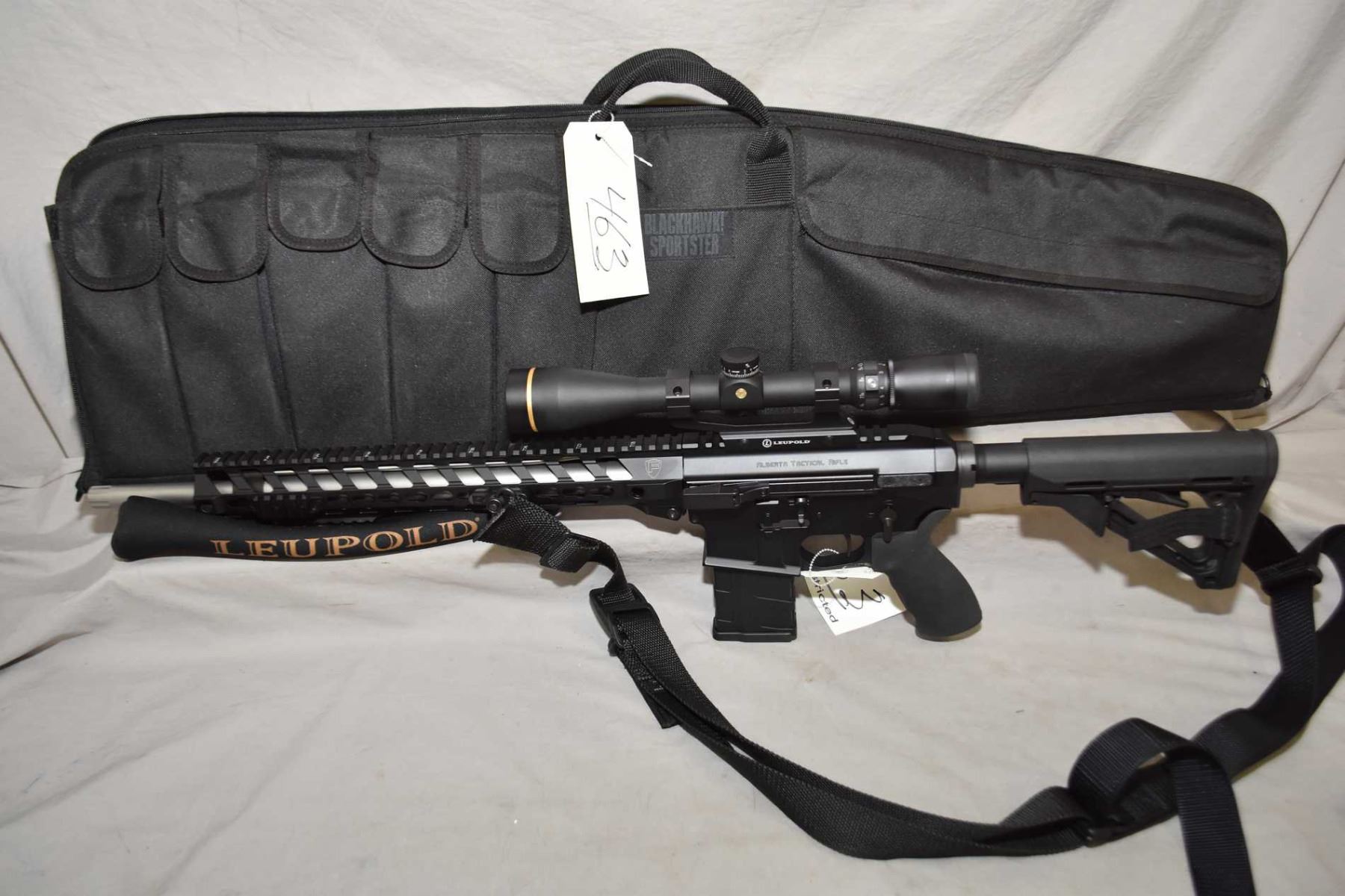 Alberta Tactical Rifle Model Modern Varmint .223 Cal Mag Fed Semi Auto Rifle w/ 19" stainless bbl [ Made in Canada, Approx. Fired One Box for sighting in, extremely accurate, blued finish, collapsible CTR butt stock, multi rail forend, with Leupold VX - 3 4.5 - 14 x 40 MM Variable Scope, in Leupold base and rings, black nylon sling, all appears as new, complete with custom Black Hawk Sporter case ] Ser # ATRS16- MV-000025