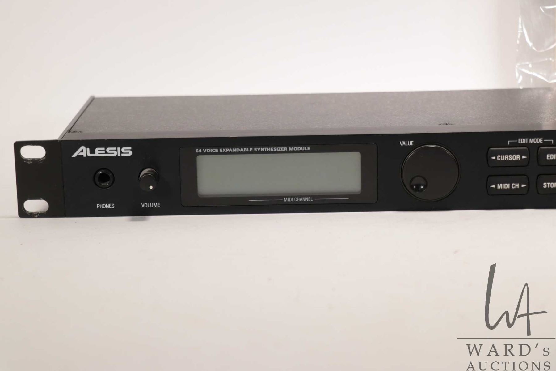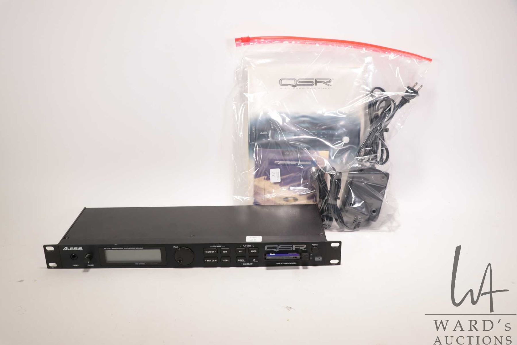 Alesis QSR 64 voice expandable synthesizer module, rack mountable and includes power cable, manual and CD Rom for Mackintosh and PC computers, working at time of cataloguing
