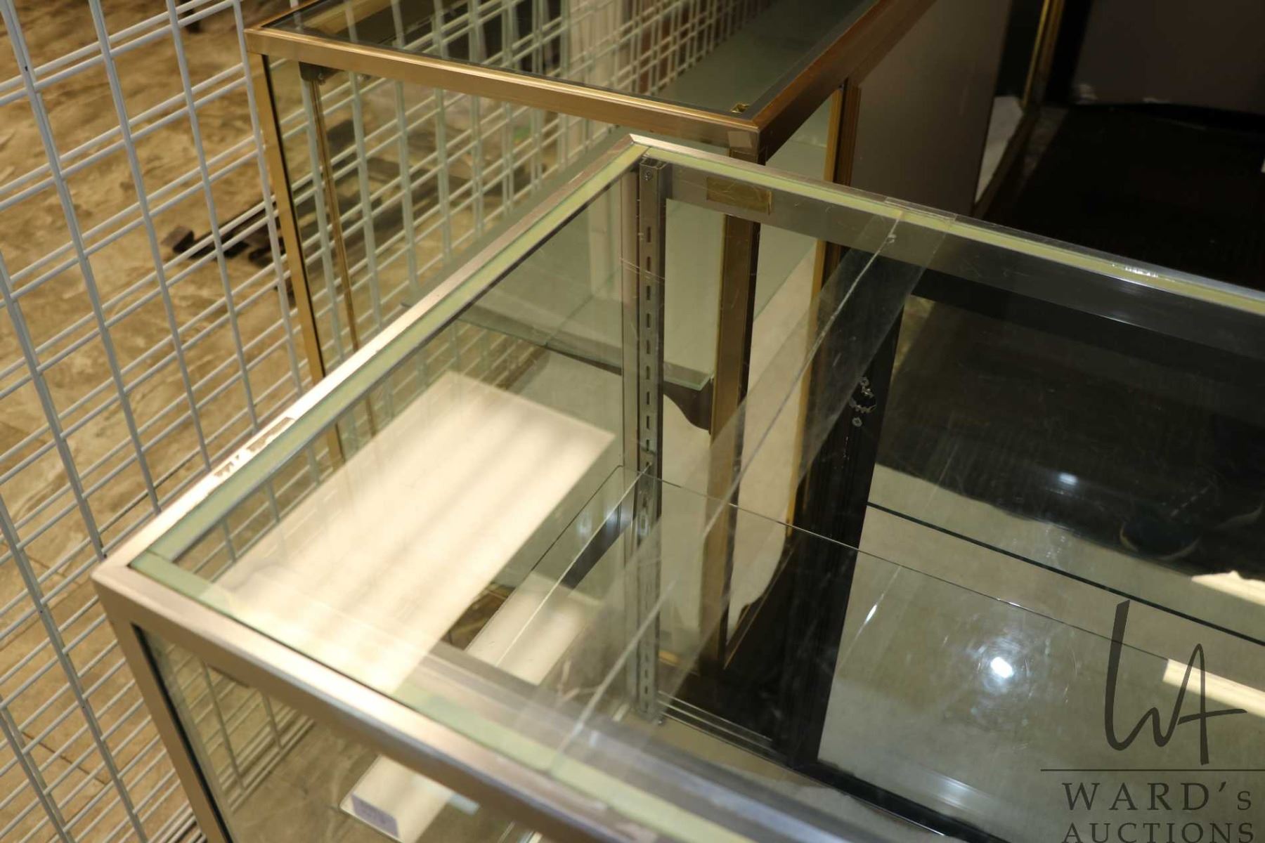 Aluminum and glass illuminated display cabinet, 38" H X 70" W X 20" D