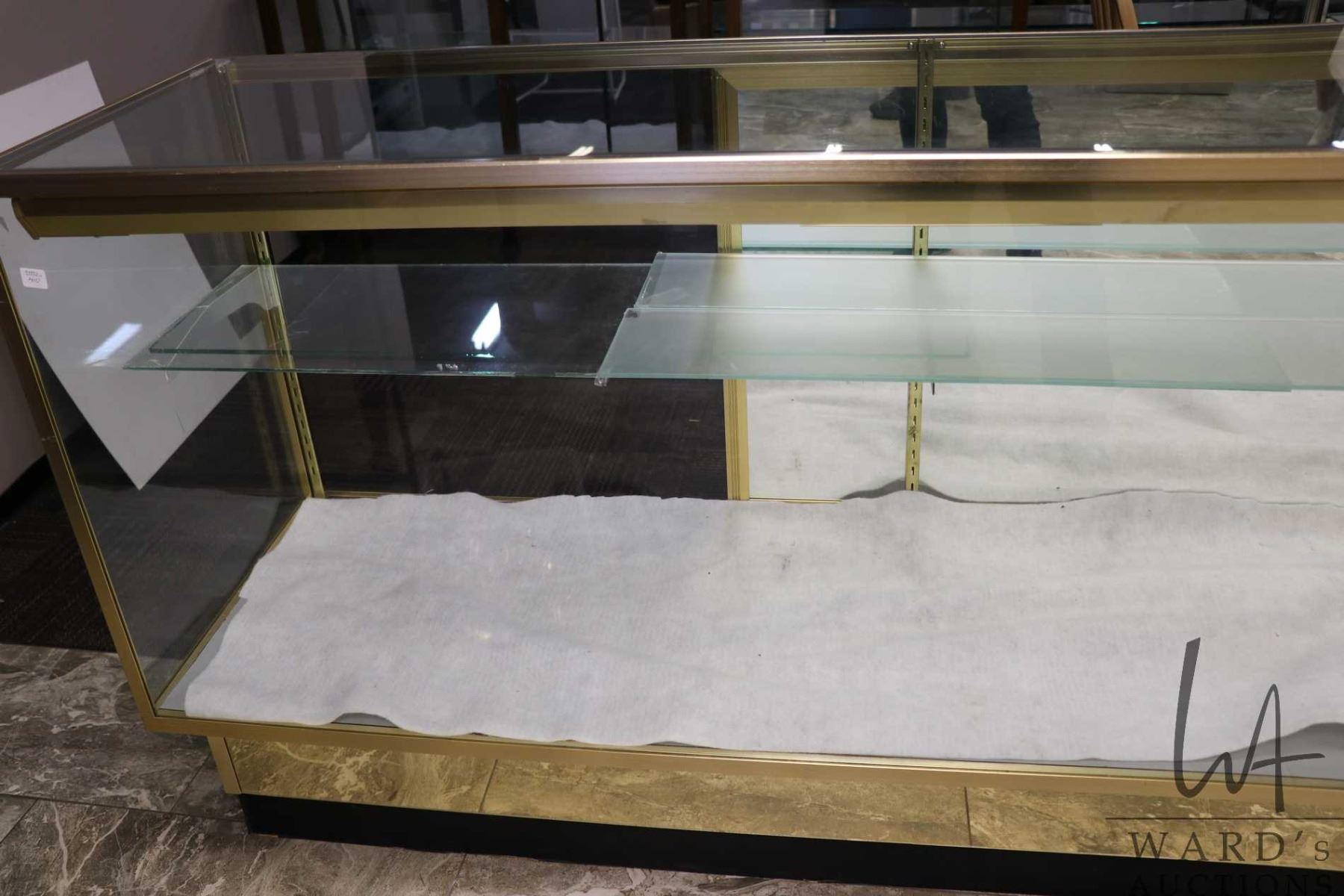 Aluminum and glass illuminated display cabinet, 38" H X 70" W X 20" D