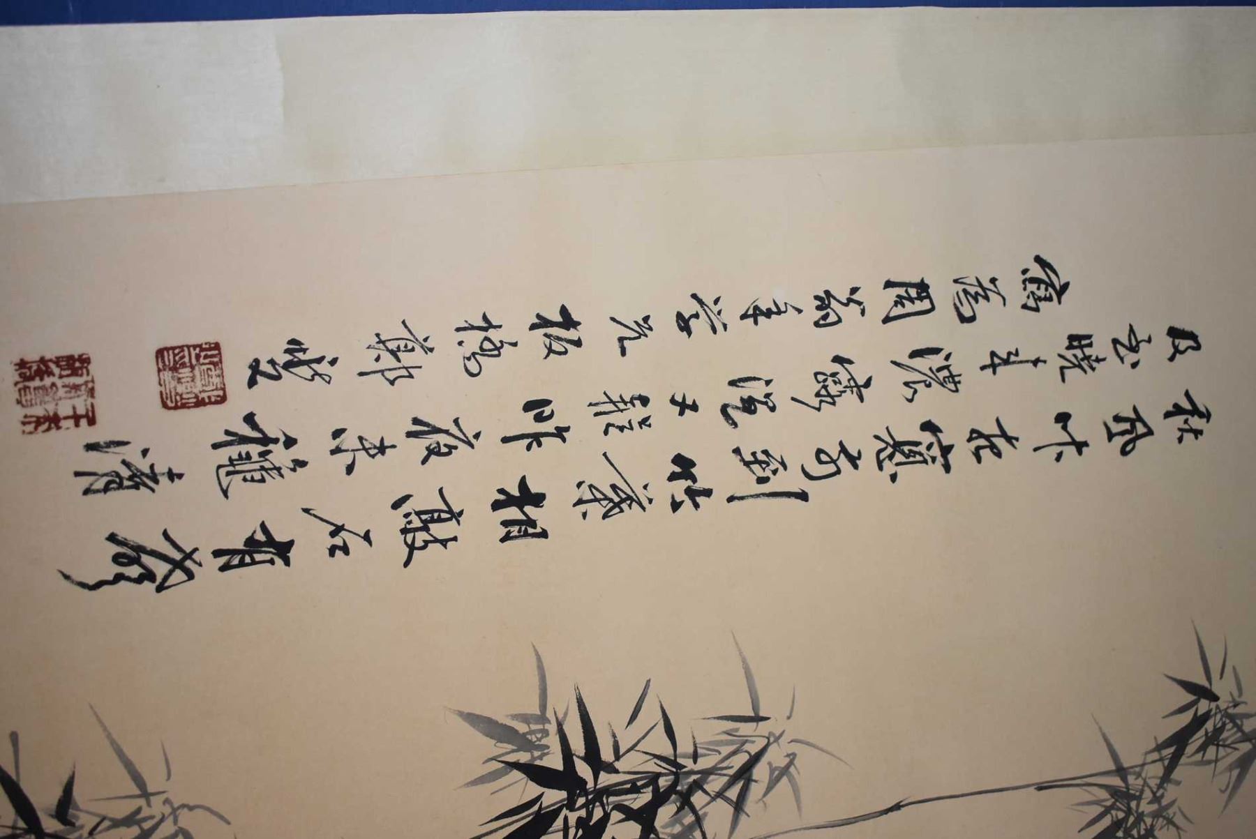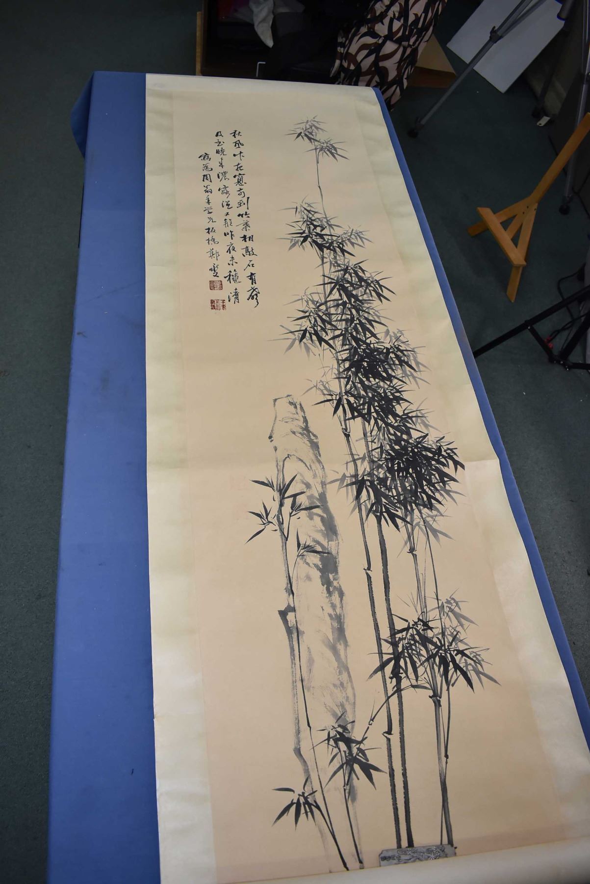 An ink on paper watercolour painted scroll "Spirit of Bamboo" 24" X 93"