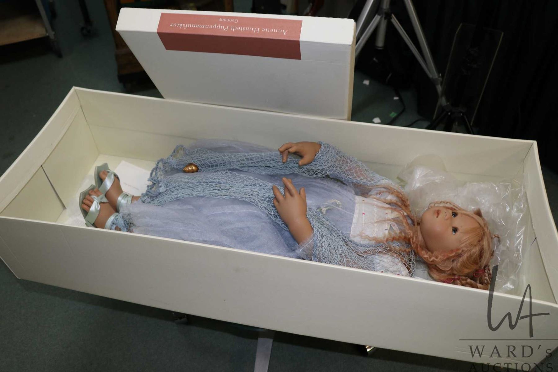 Annette Himstedt Kinder limited edition 33" doll "Liniki" with hand painted "Atlantis Underwater" features human hair wig, and German hand blown glass eyes, consignor purports she has never been removed from her original box, includes certificate of authenticity and is numbered 120/377