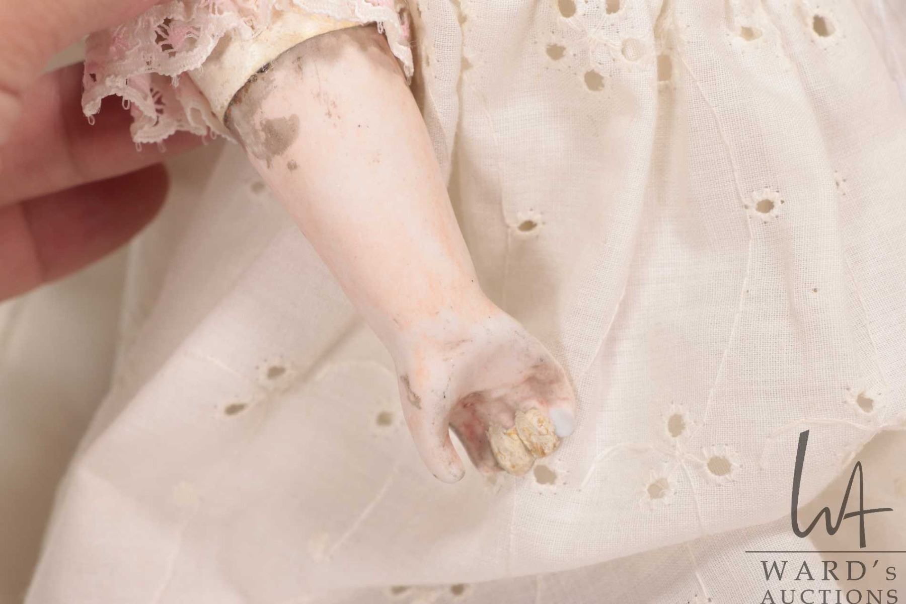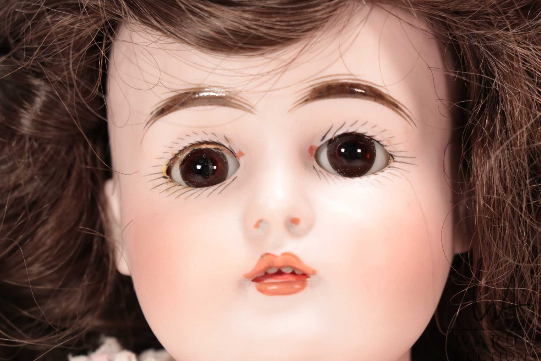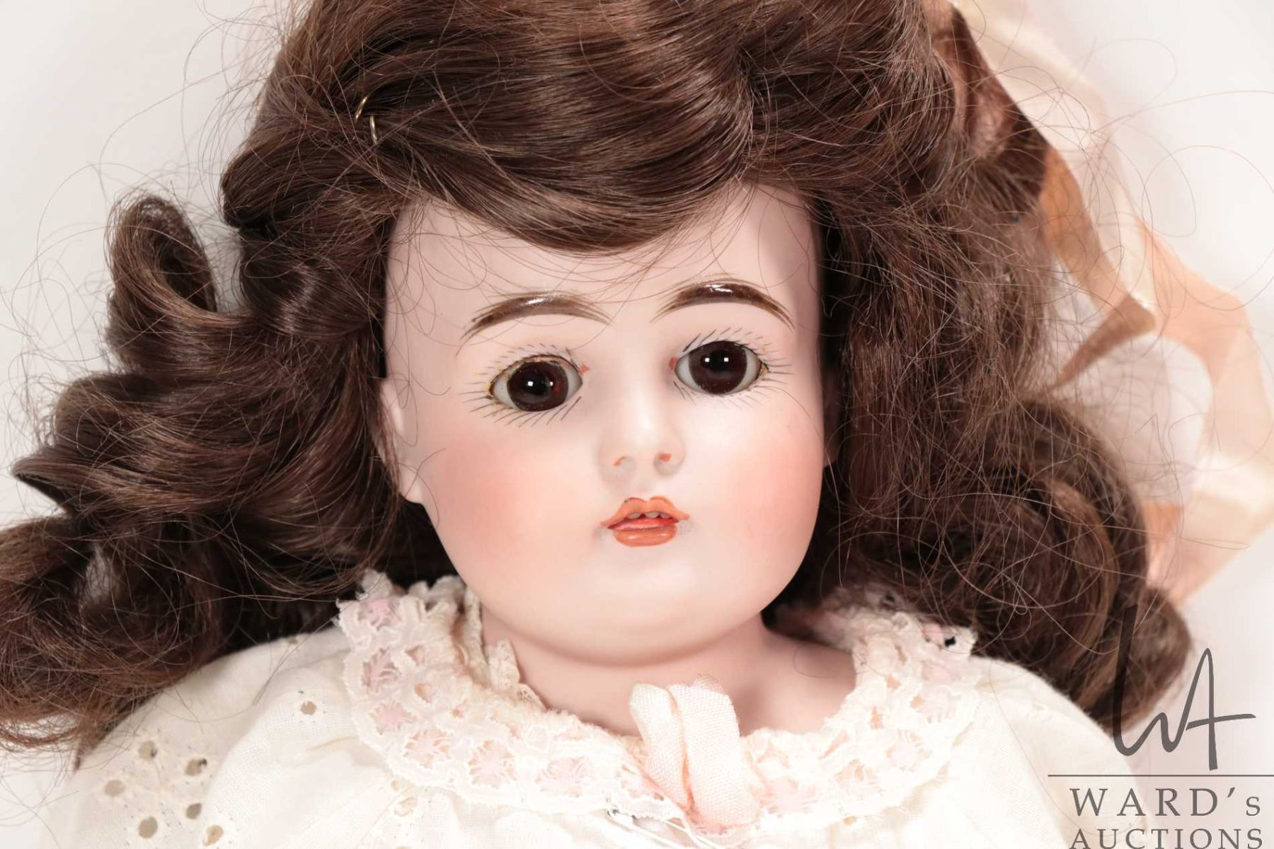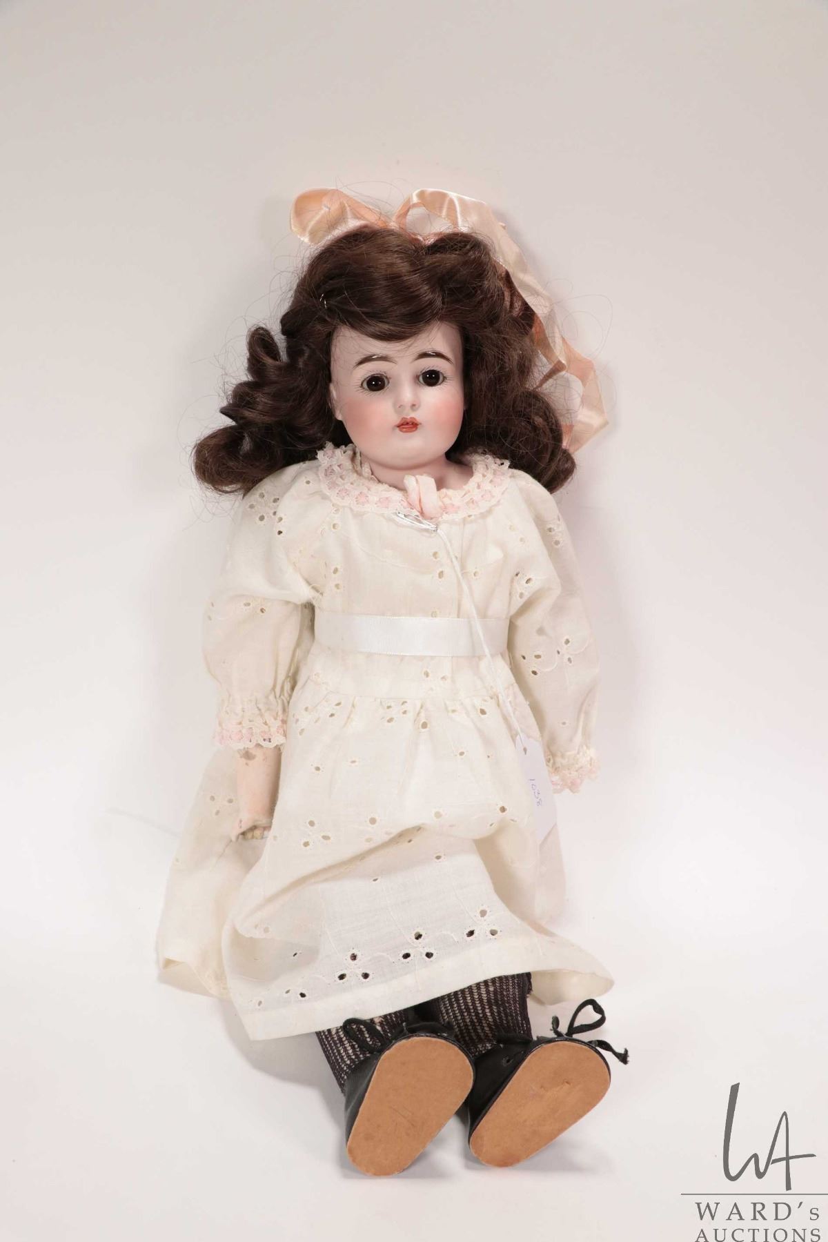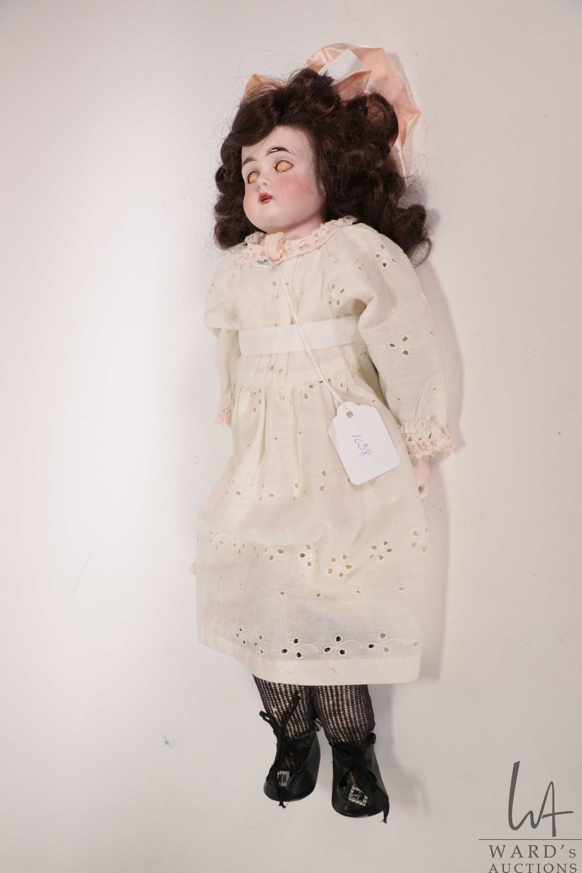 Antique 18" Kestner 166.7 bisque head doll on leather body. No cracks seen to bisque Note: Viewing in person recommended. Buyer must satisfy themselves as to condition