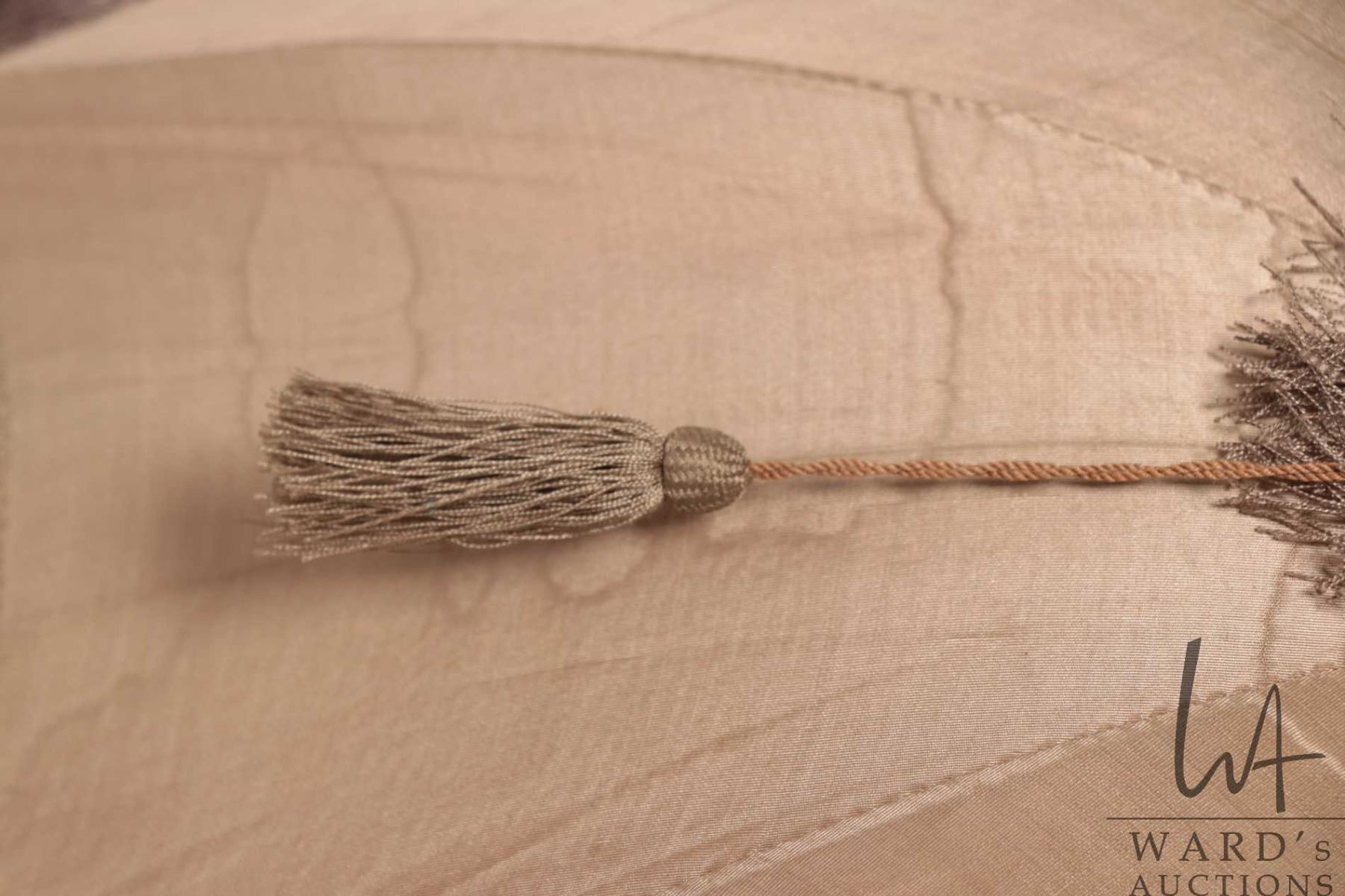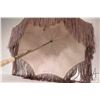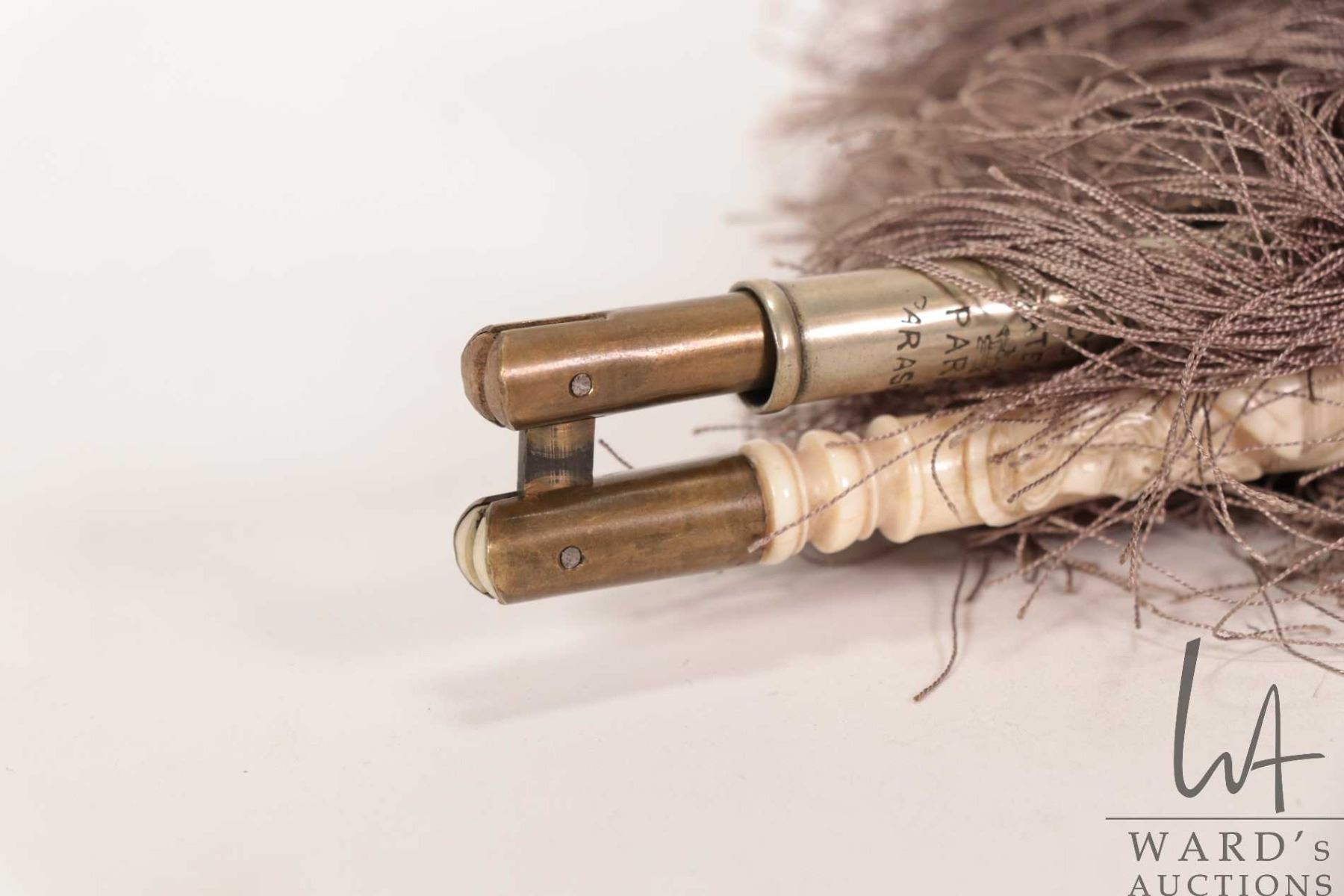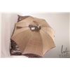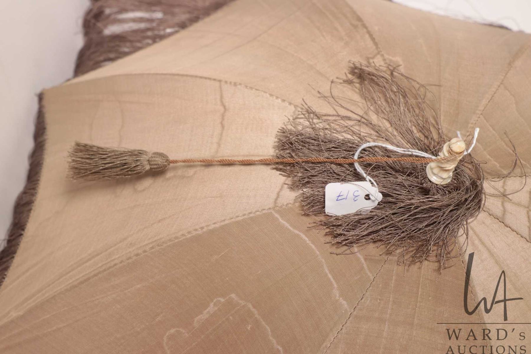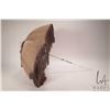 Antique 1851 Sancsters Park Parasol with silk and deep fringed cover and hand carved collapsible handle, 26" in length