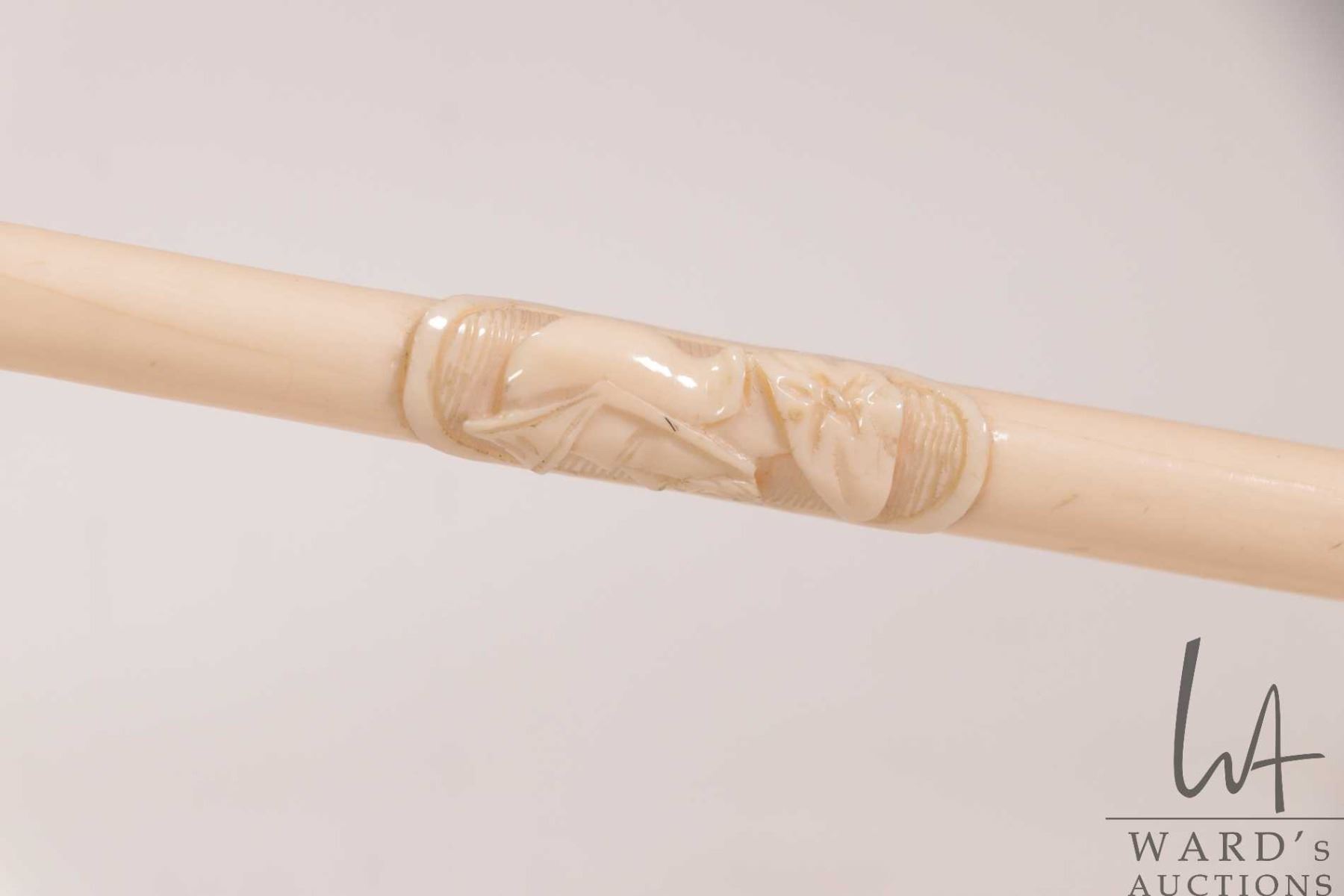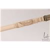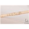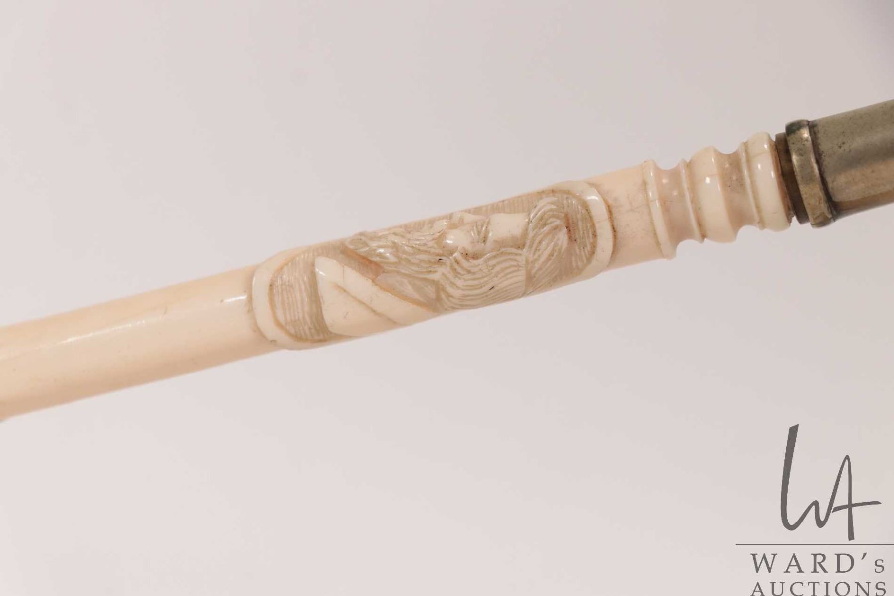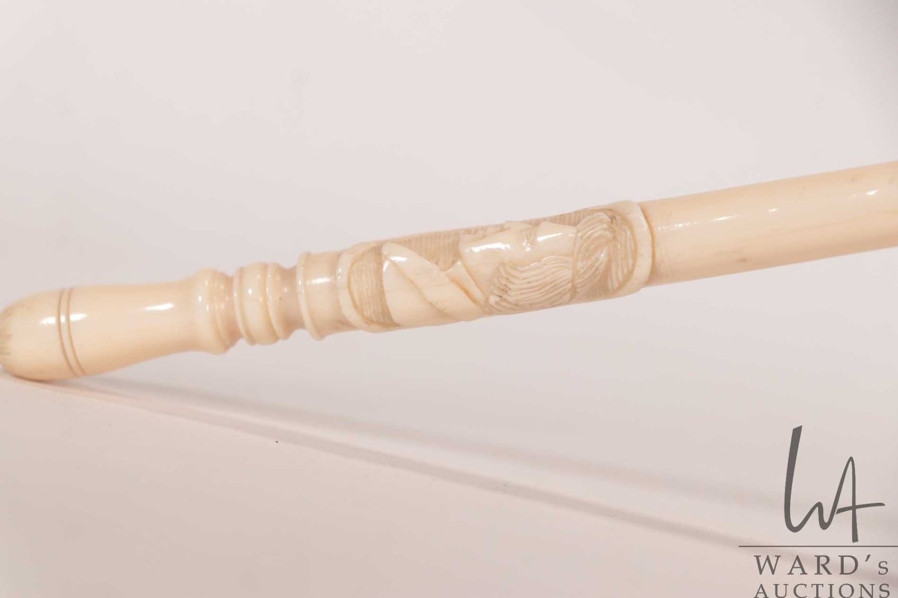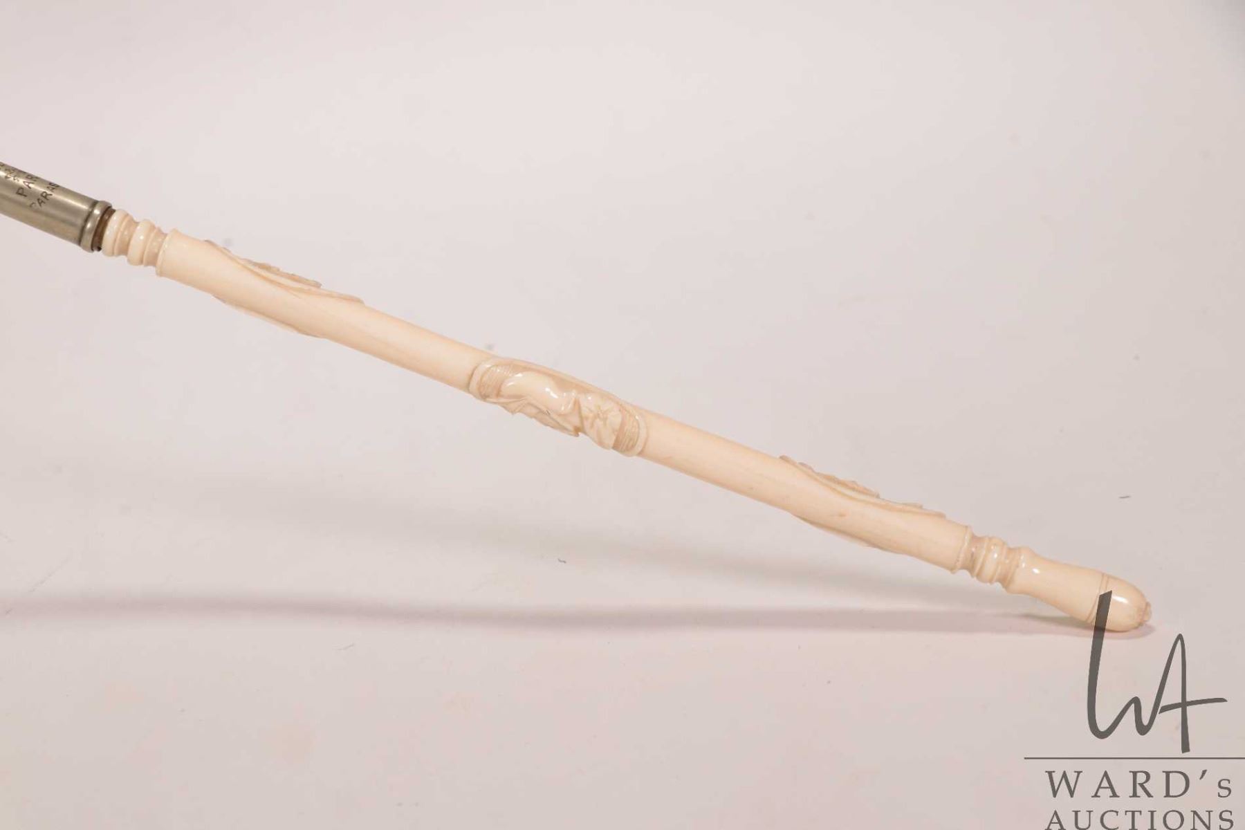 Antique 1851 Sancsters Park Parasol with silk and deep fringed cover and hand carved collapsible handle, 26" in length