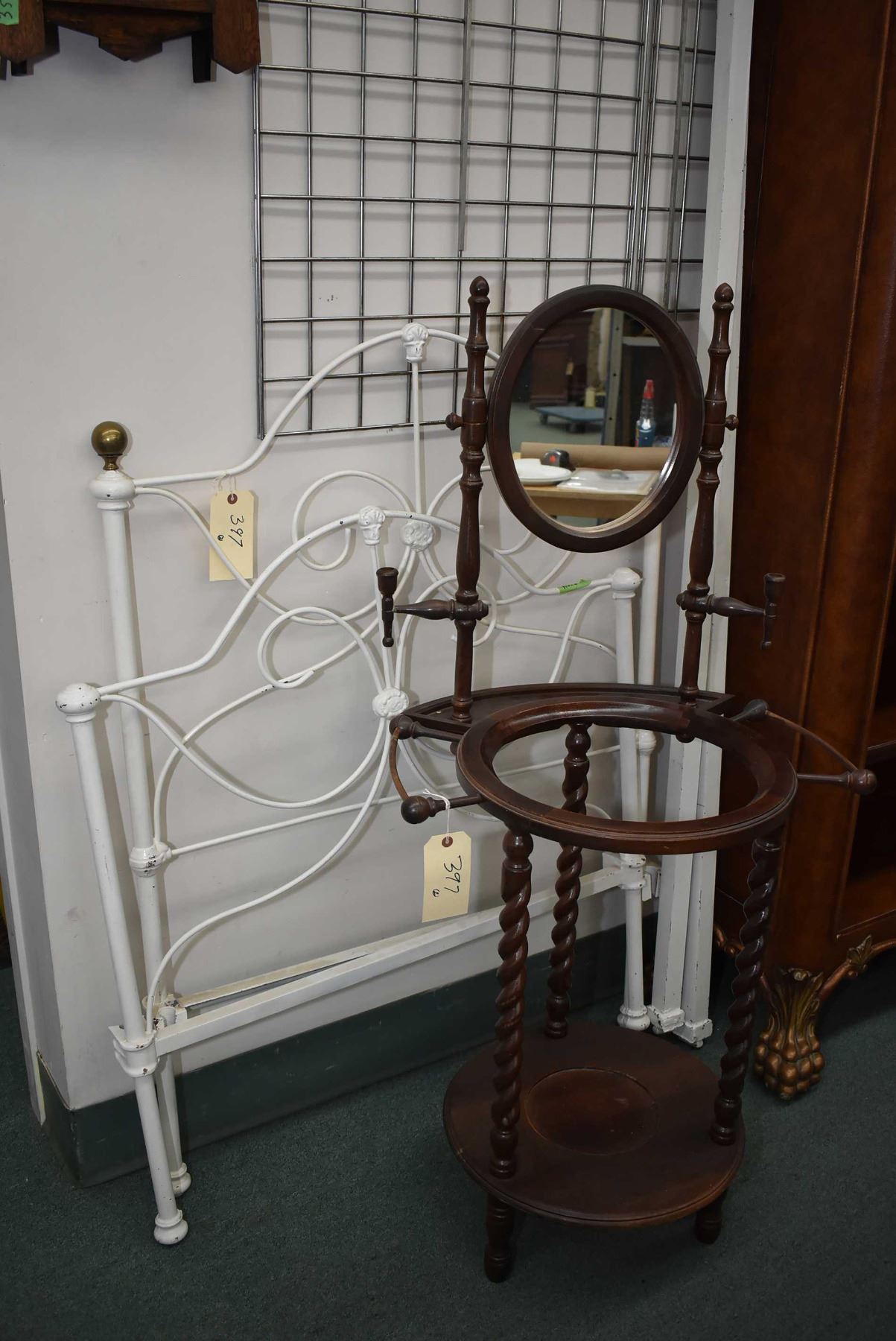 Antique 34" cot sized wrought iron headboard, foot board and rails plus a Victorian style wash stand