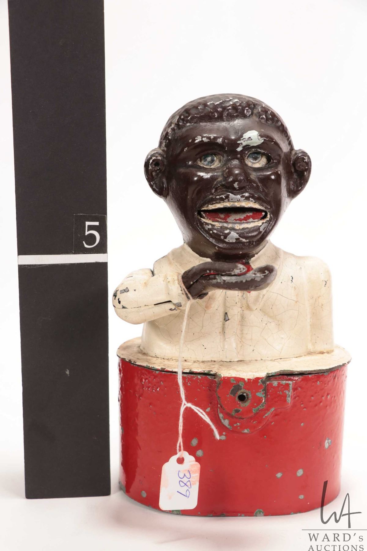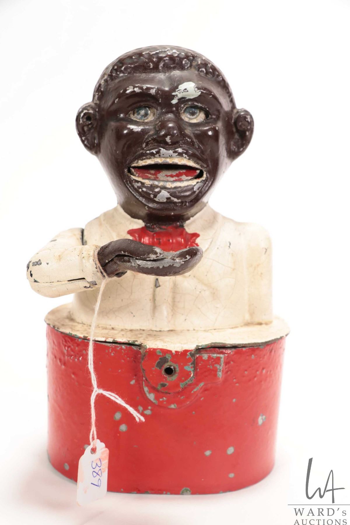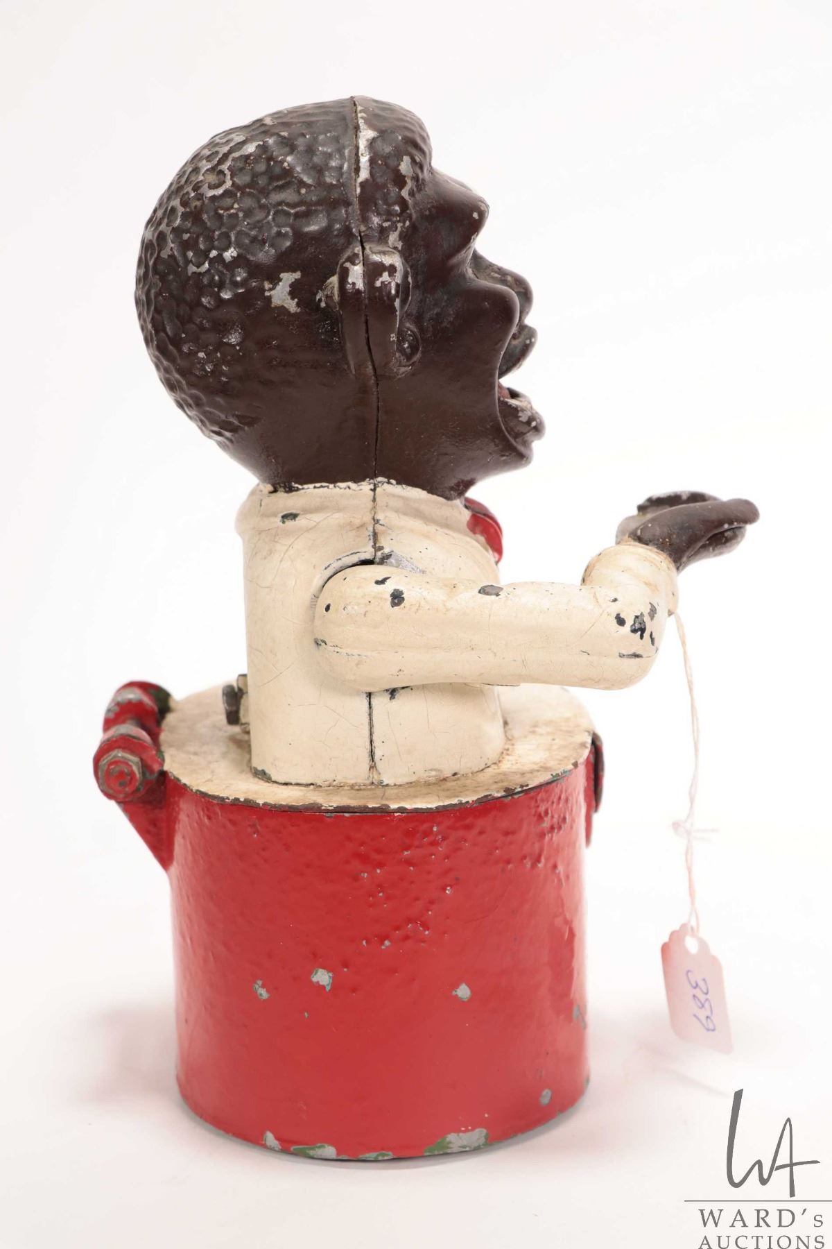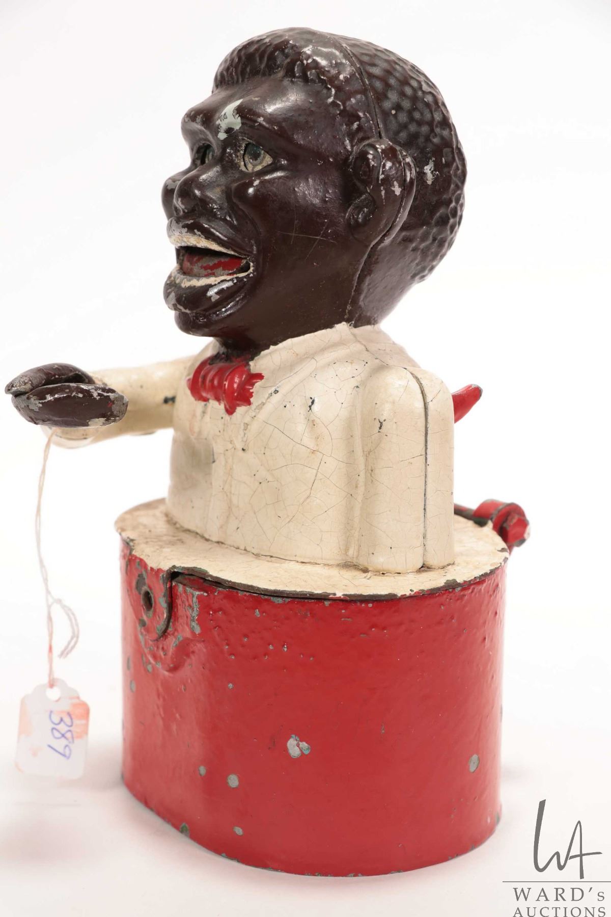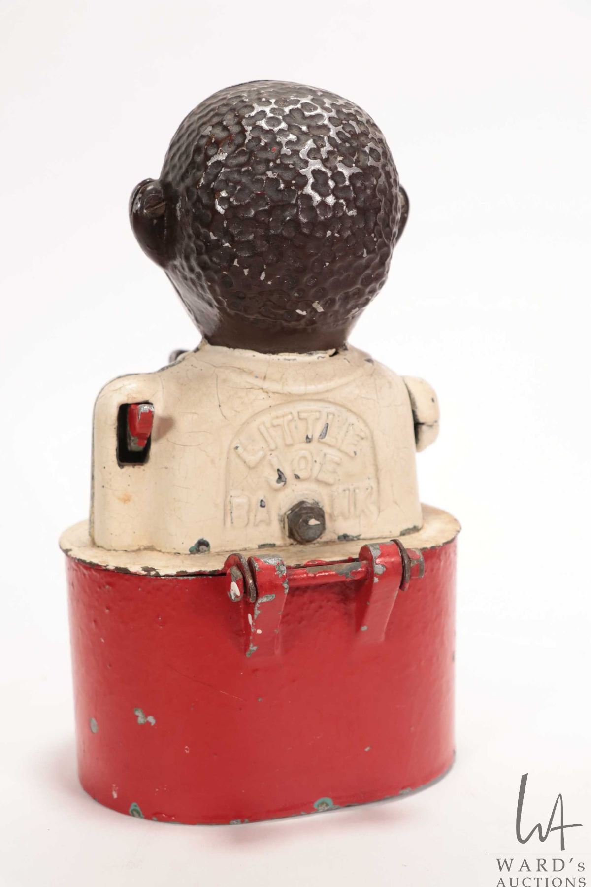 Antique Black Americana cast metal "Little Jo Ban mechanical money bank 8 1/2" in height
