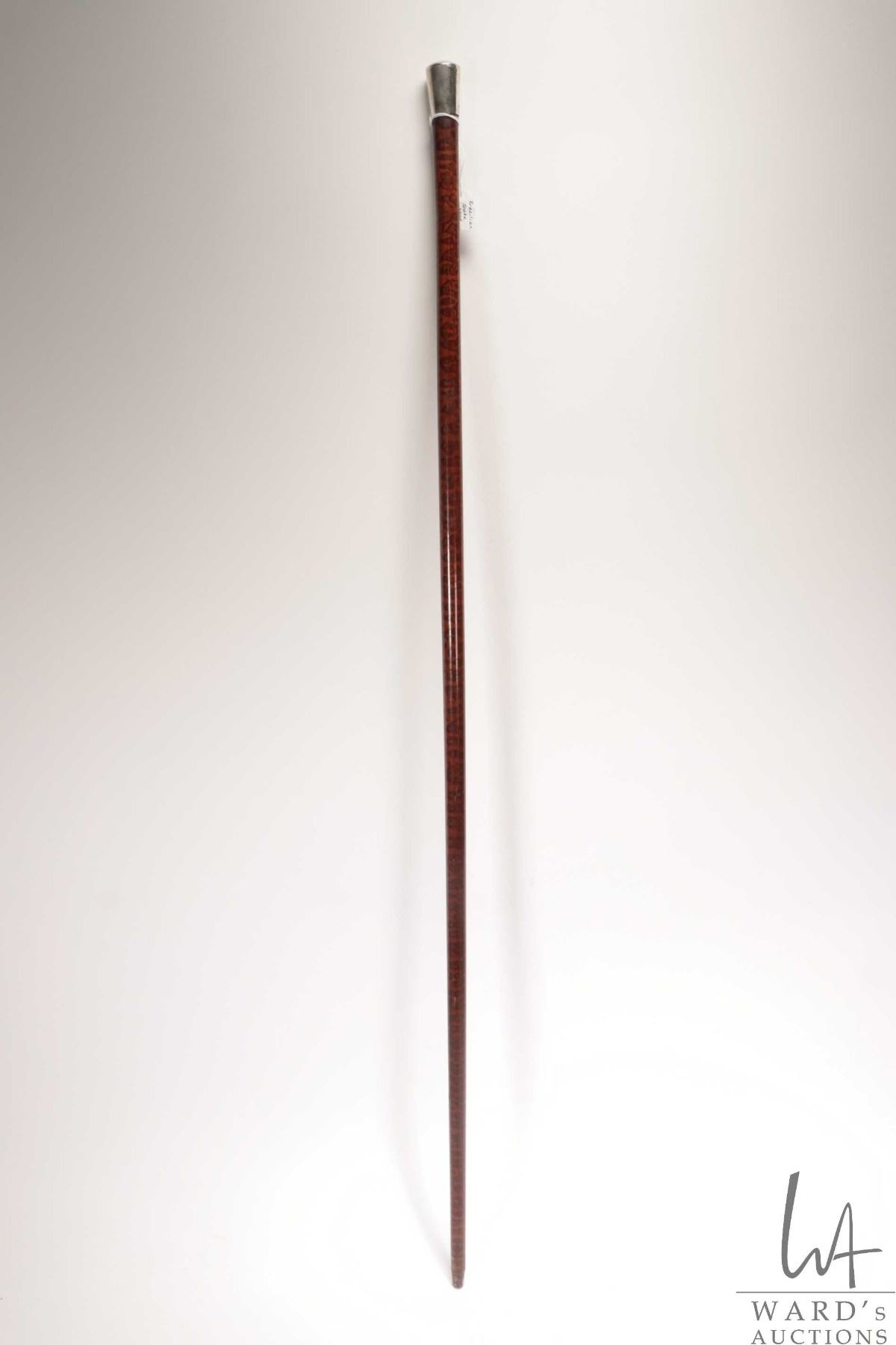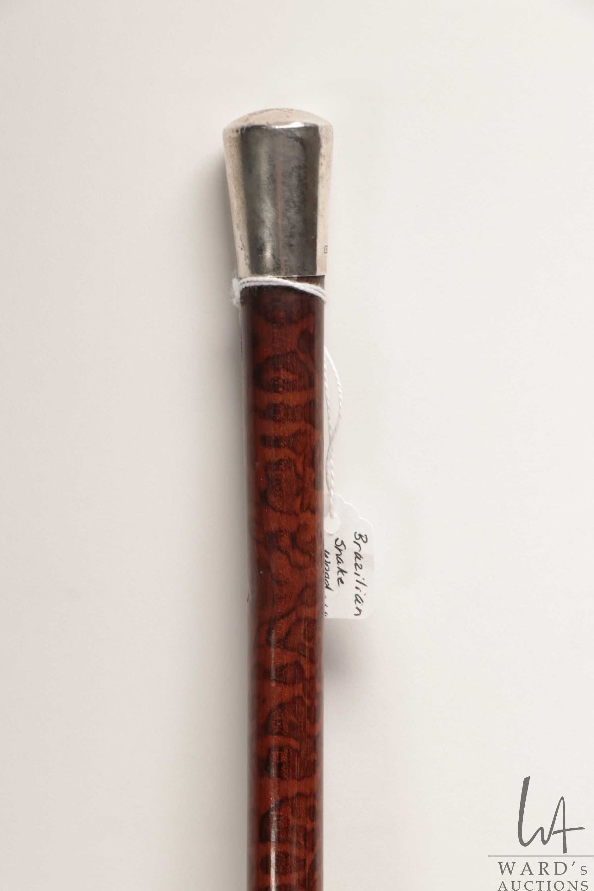 Antique Brazilian snakewood walking stick with sterling silver top marked with British hallmarks, 36" in height