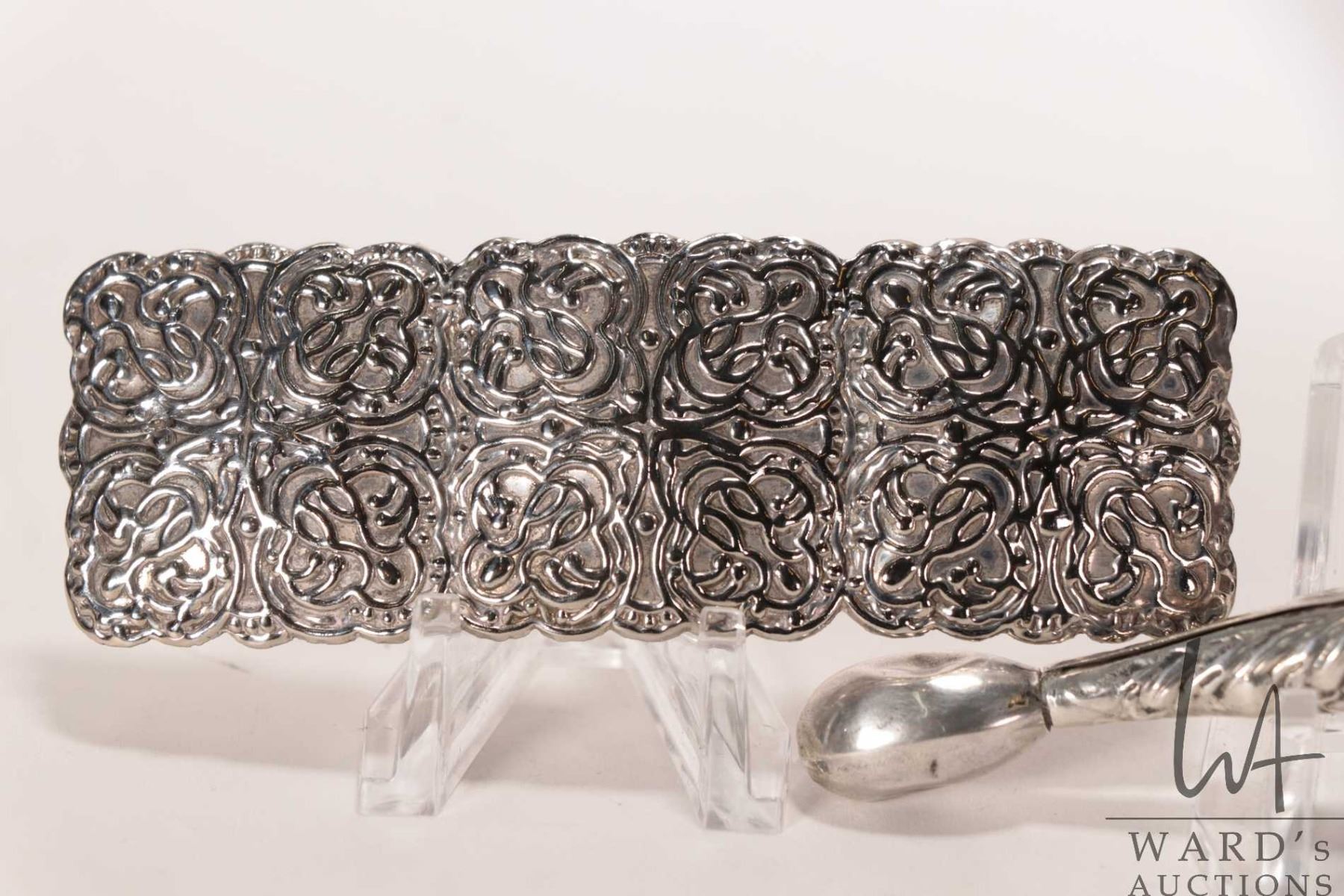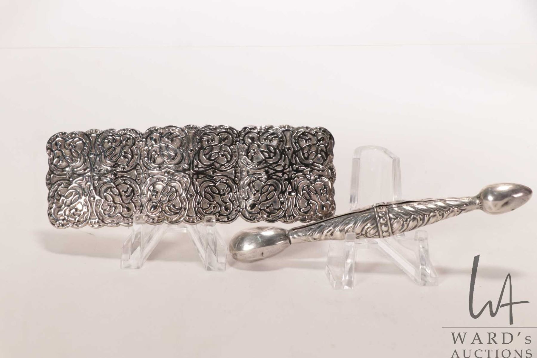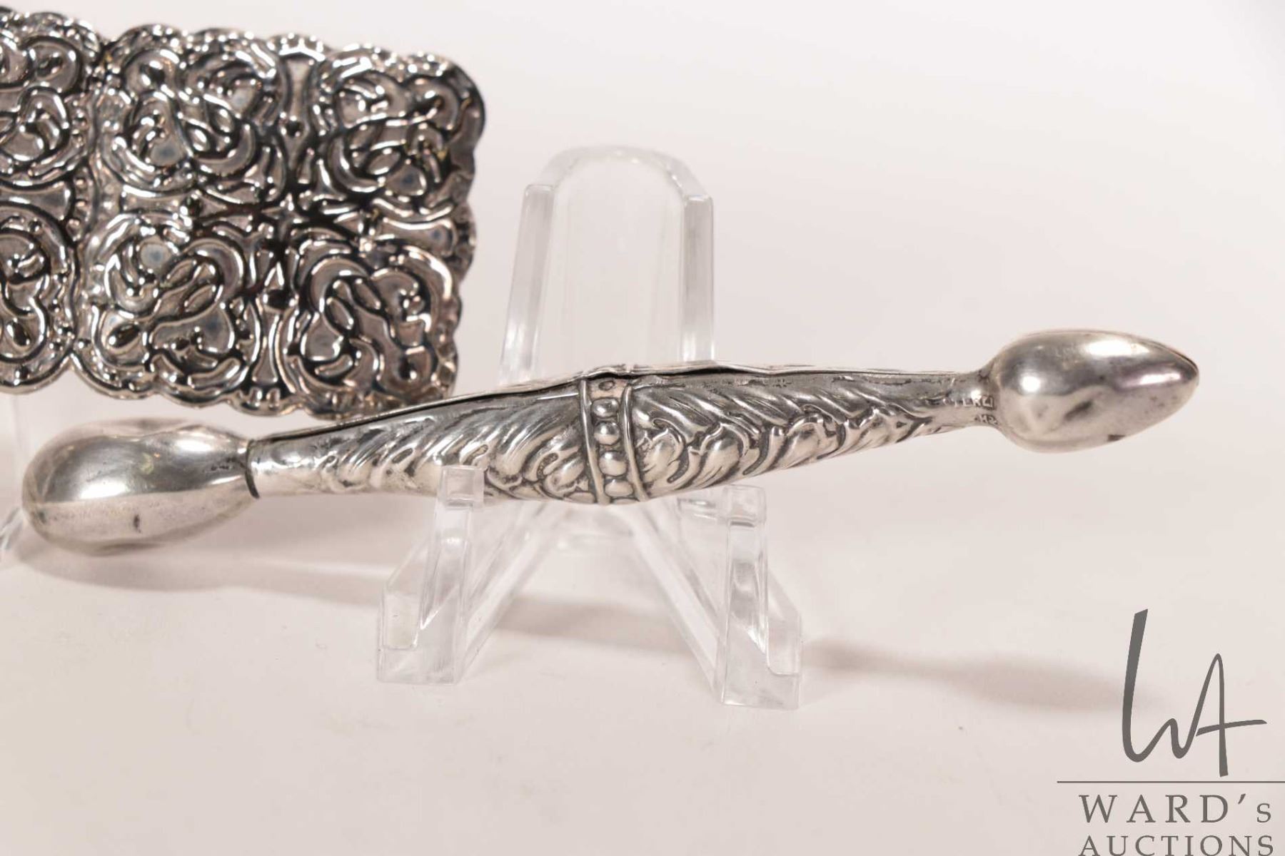 Antique British sterling silver hallmarked glover darner and a repousee hair barrette
