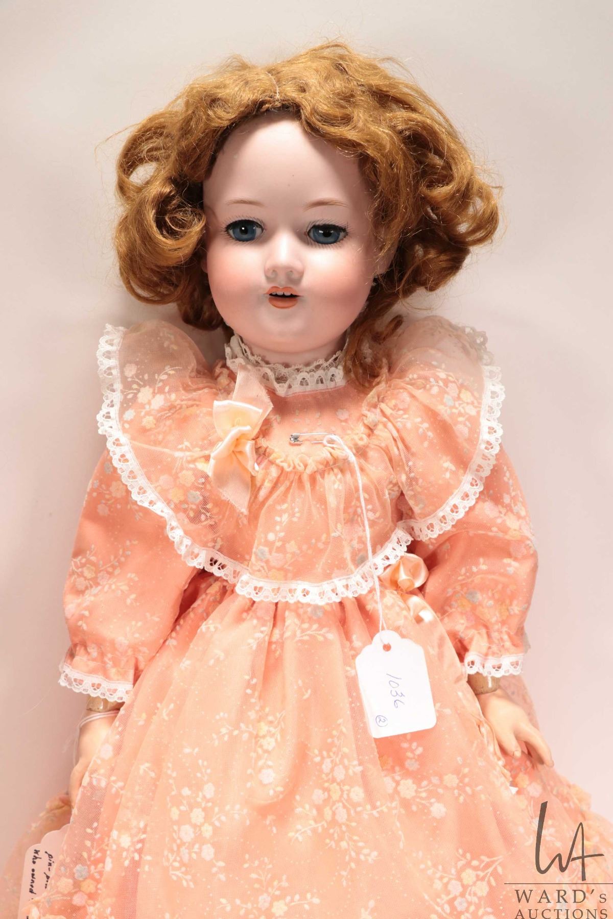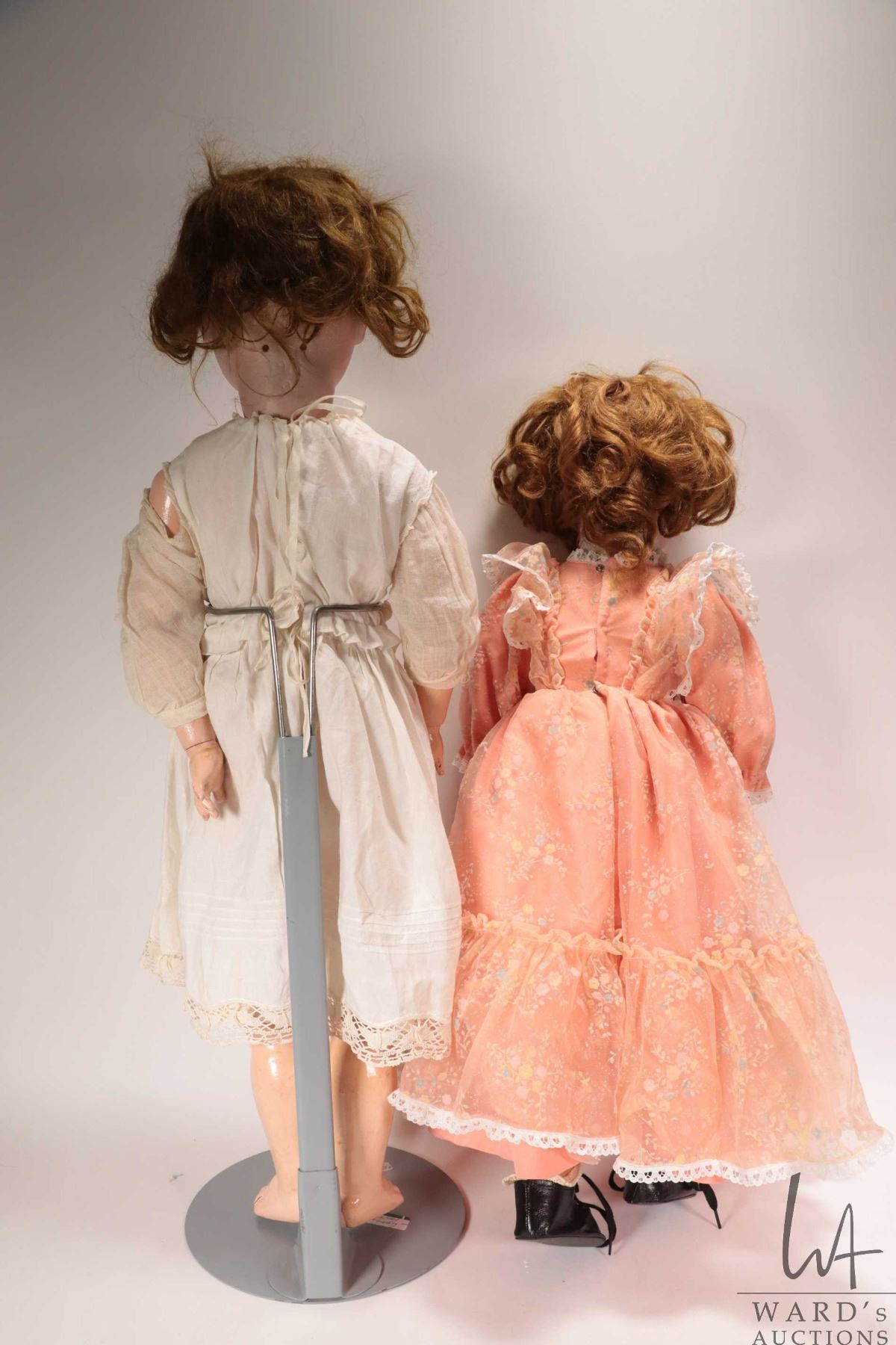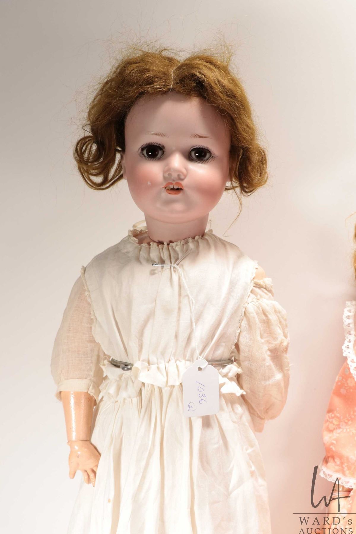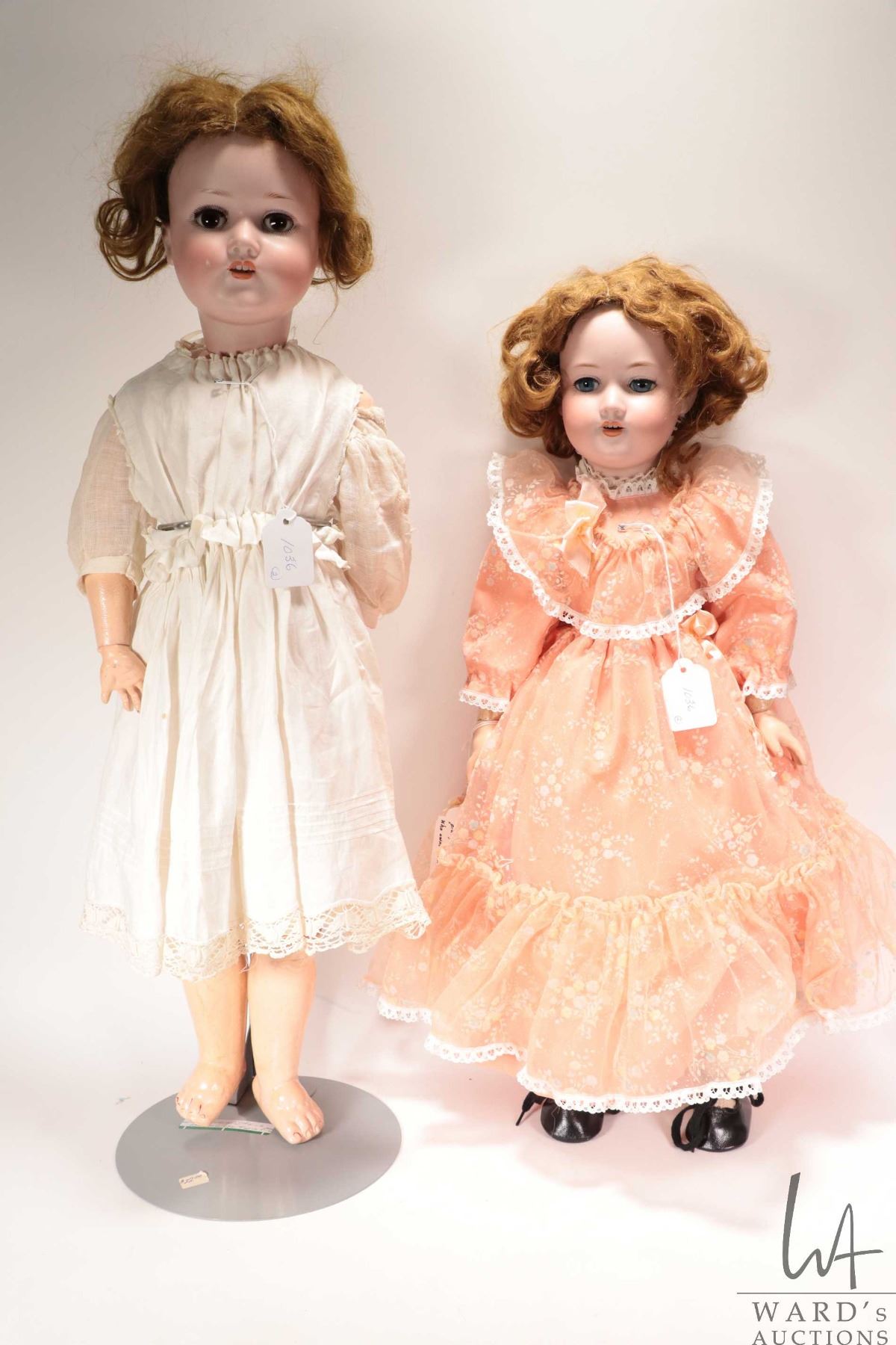 Antique C.M. Bermann bisque head 27" doll on jointed composition body with brown glass sleep eyes. No cracks seen to bisque, left cheek rub and an Armand Marseille 24" model 390 on wooden body with composition hands, blue glass sleep eyes. No cracks seen to bisque Note: Viewing in person recommended. Buyer must satisfy themselves as to condition