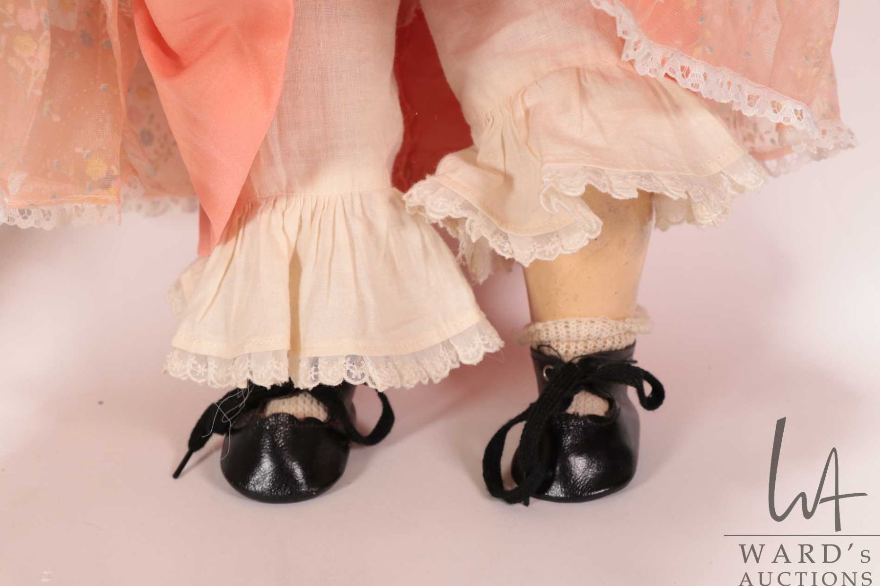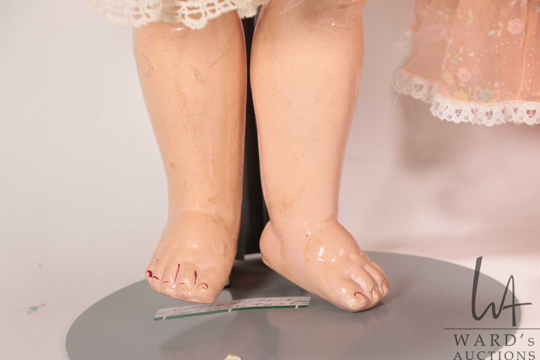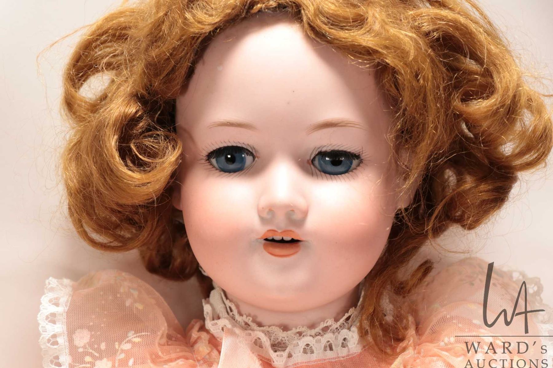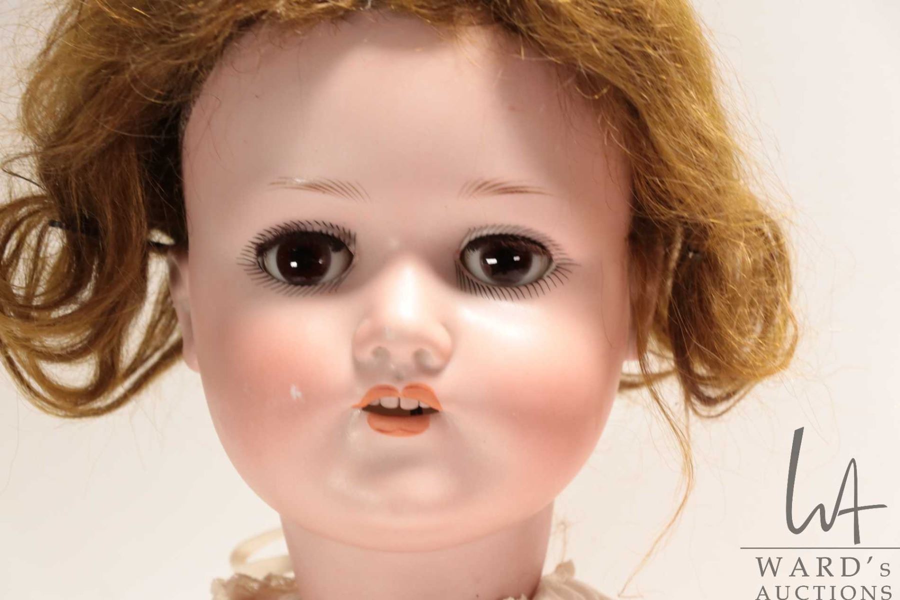 Antique C.M. Bermann bisque head 27" doll on jointed composition body with brown glass sleep eyes. No cracks seen to bisque, left cheek rub and an Armand Marseille 24" model 390 on wooden body with composition hands, blue glass sleep eyes. No cracks seen to bisque Note: Viewing in person recommended. Buyer must satisfy themselves as to condition