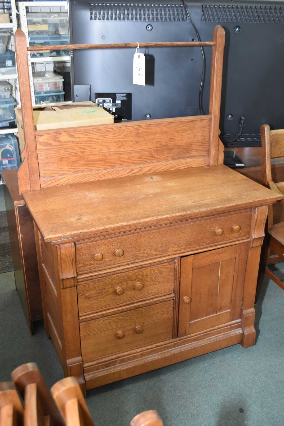 Antique Canadiana three drawer washstand with commode cupboard and towel bar