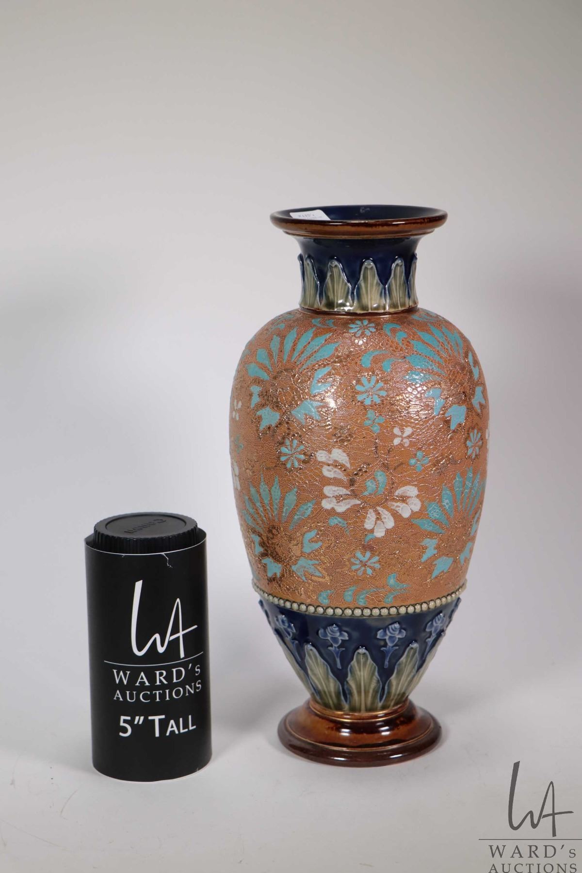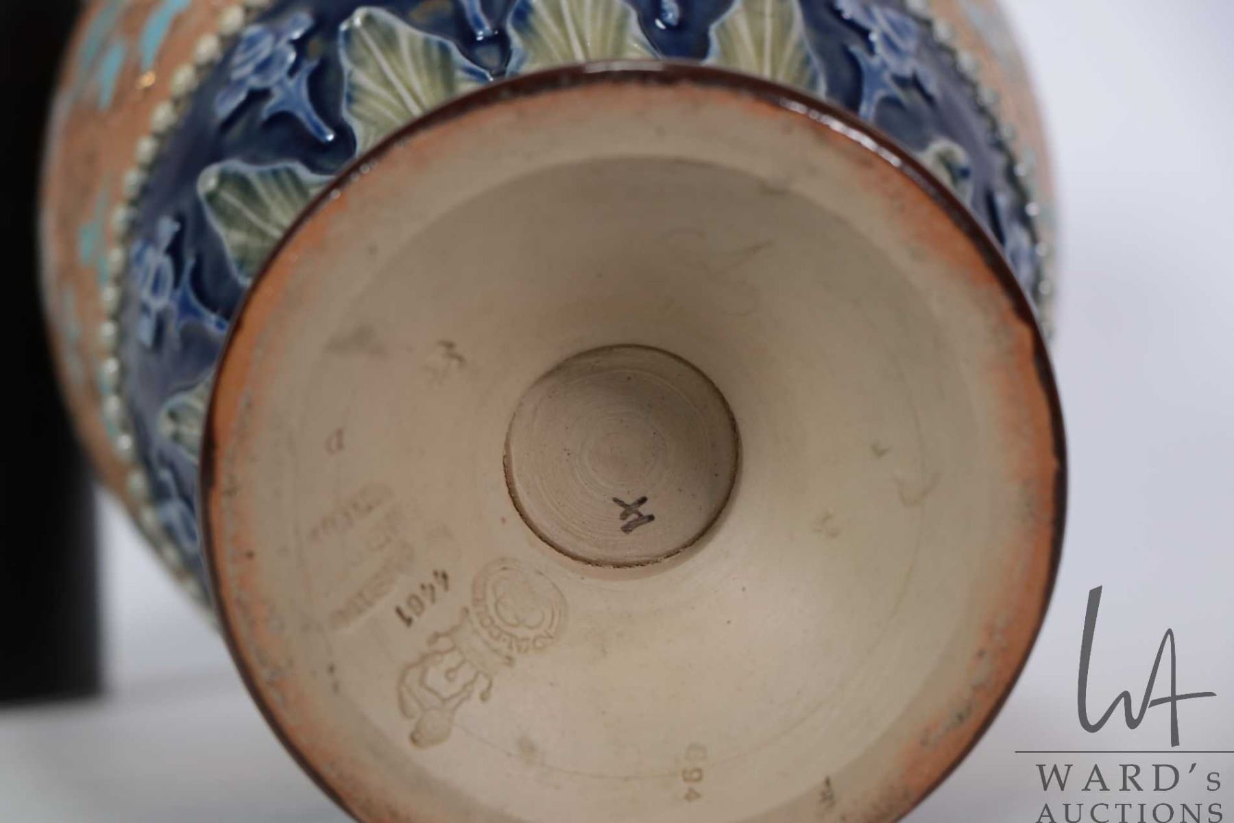 Antique Doulton Slater glazed stoneware and handpainted baluster vase, with incised number 4461, 12" in height