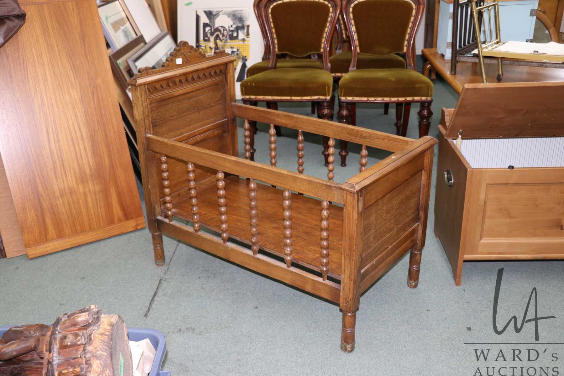 Antique Eastlake cradle, for doll or teddy bear use, 33" H to top of headboard