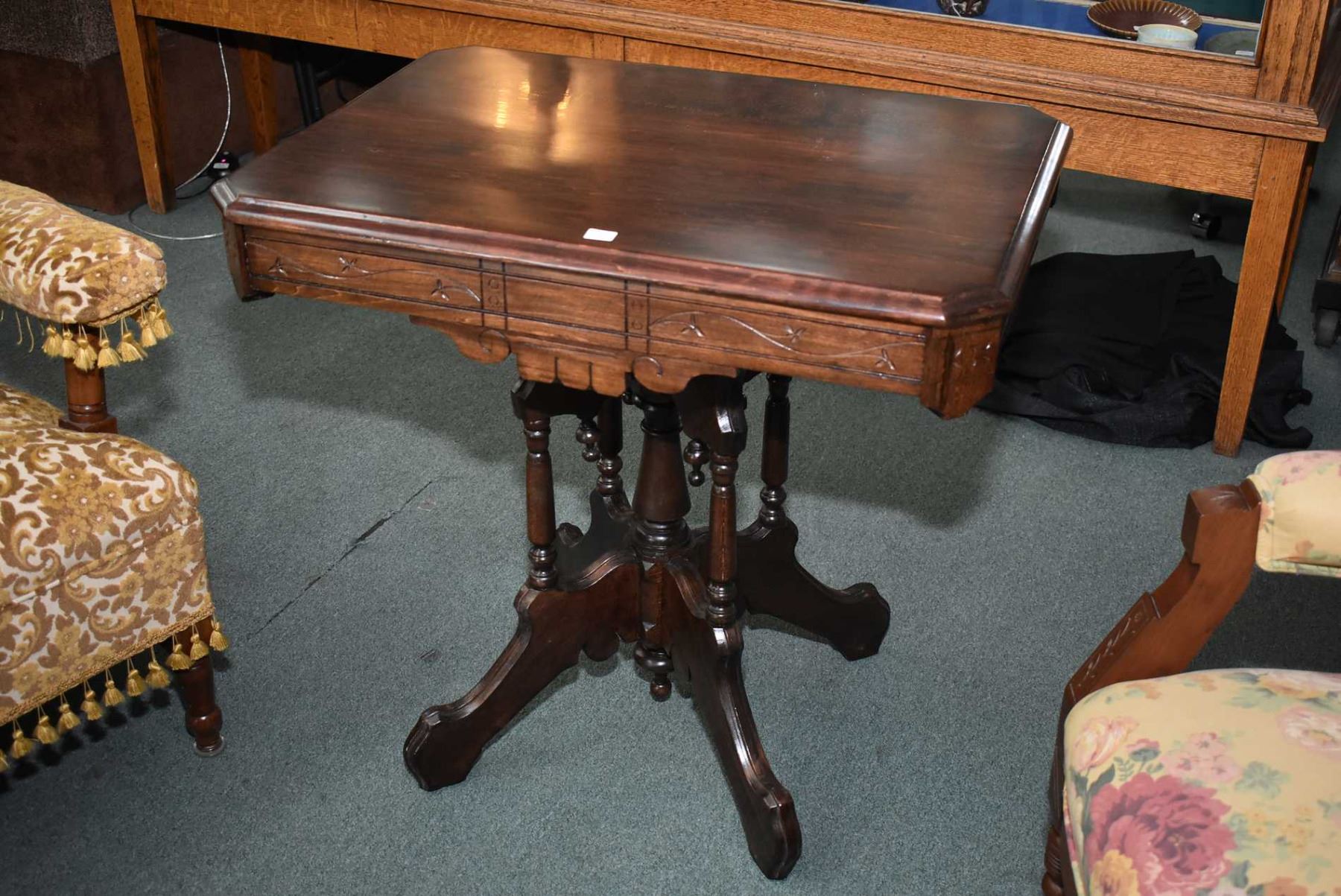 Antique Eastlake lamp table with carved skirt and center pedestal
