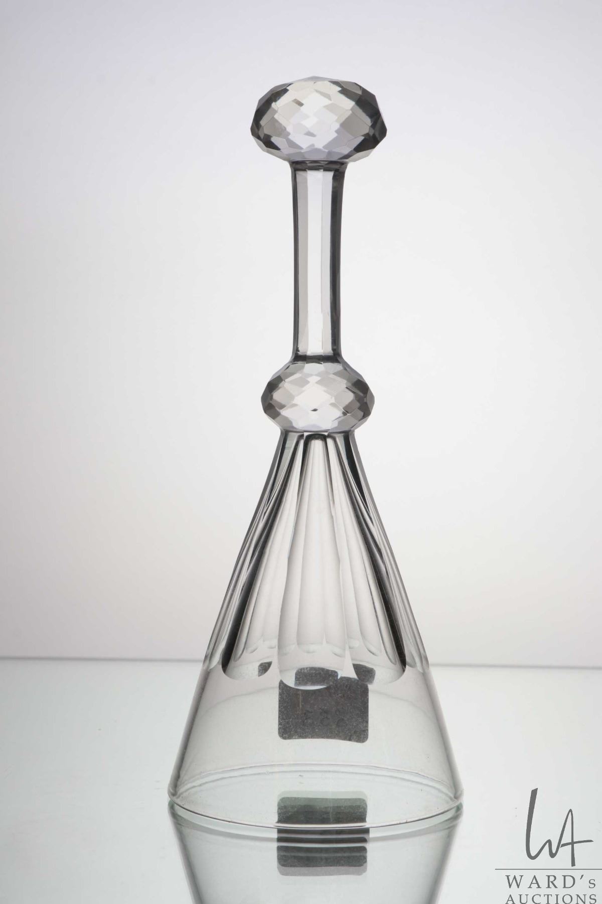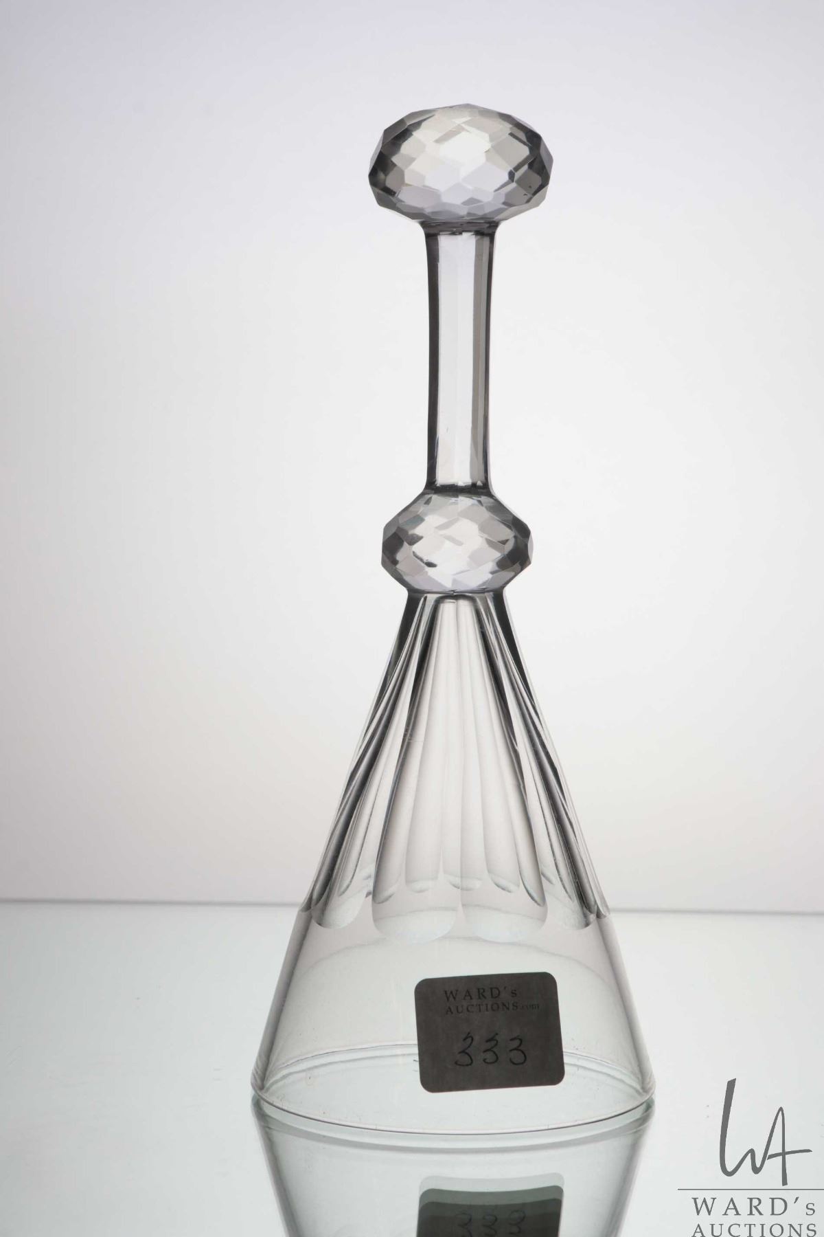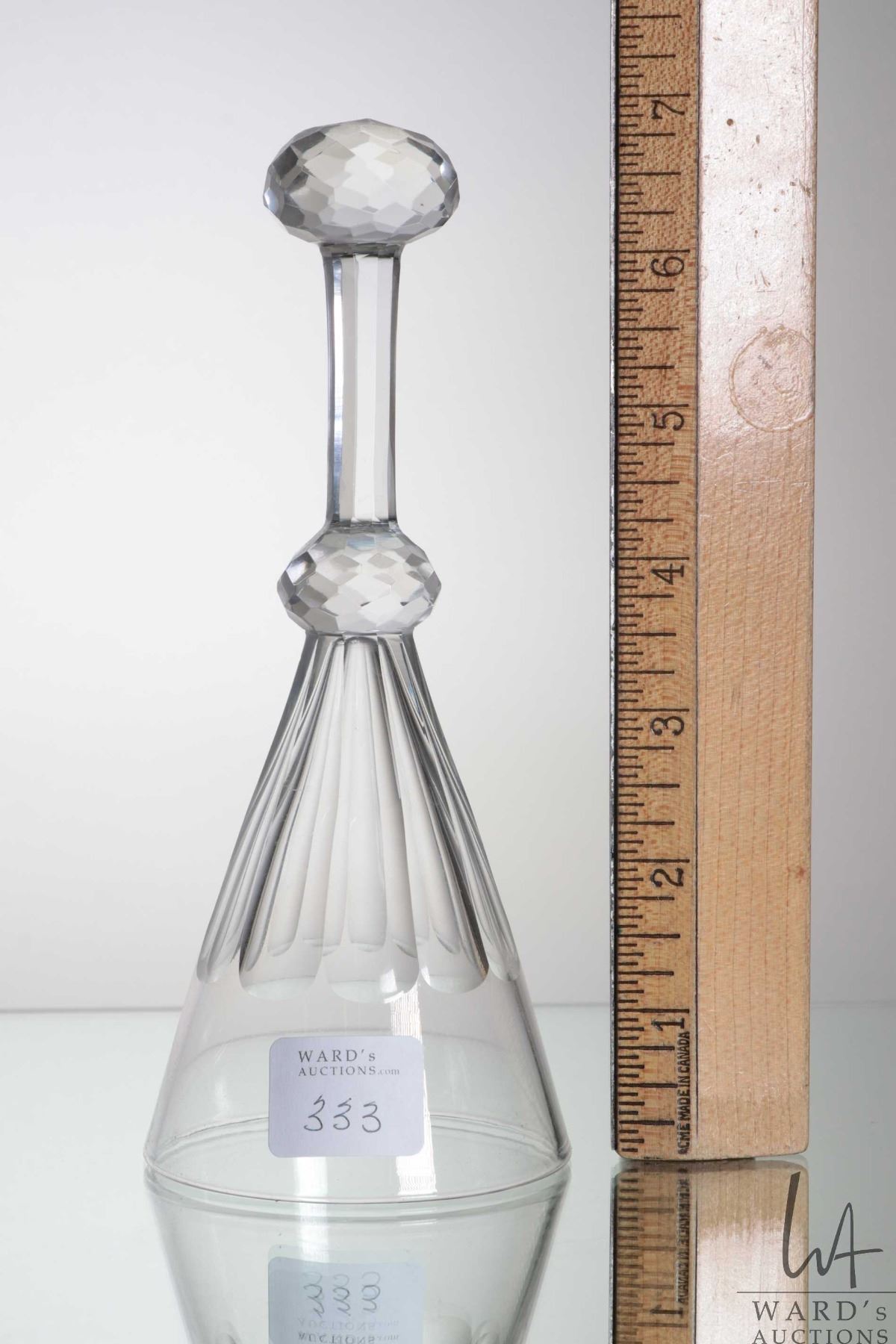 Antique English stirrup glass with petal etched bowl and faceted knob and finial, circa 1930, 18cm in height