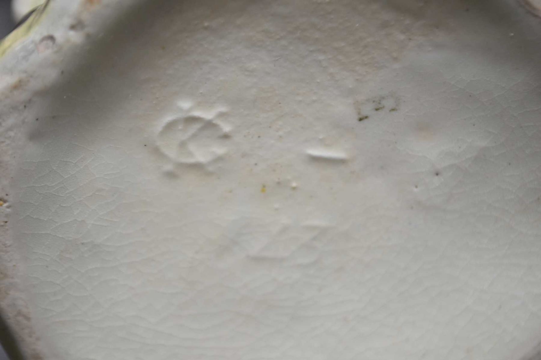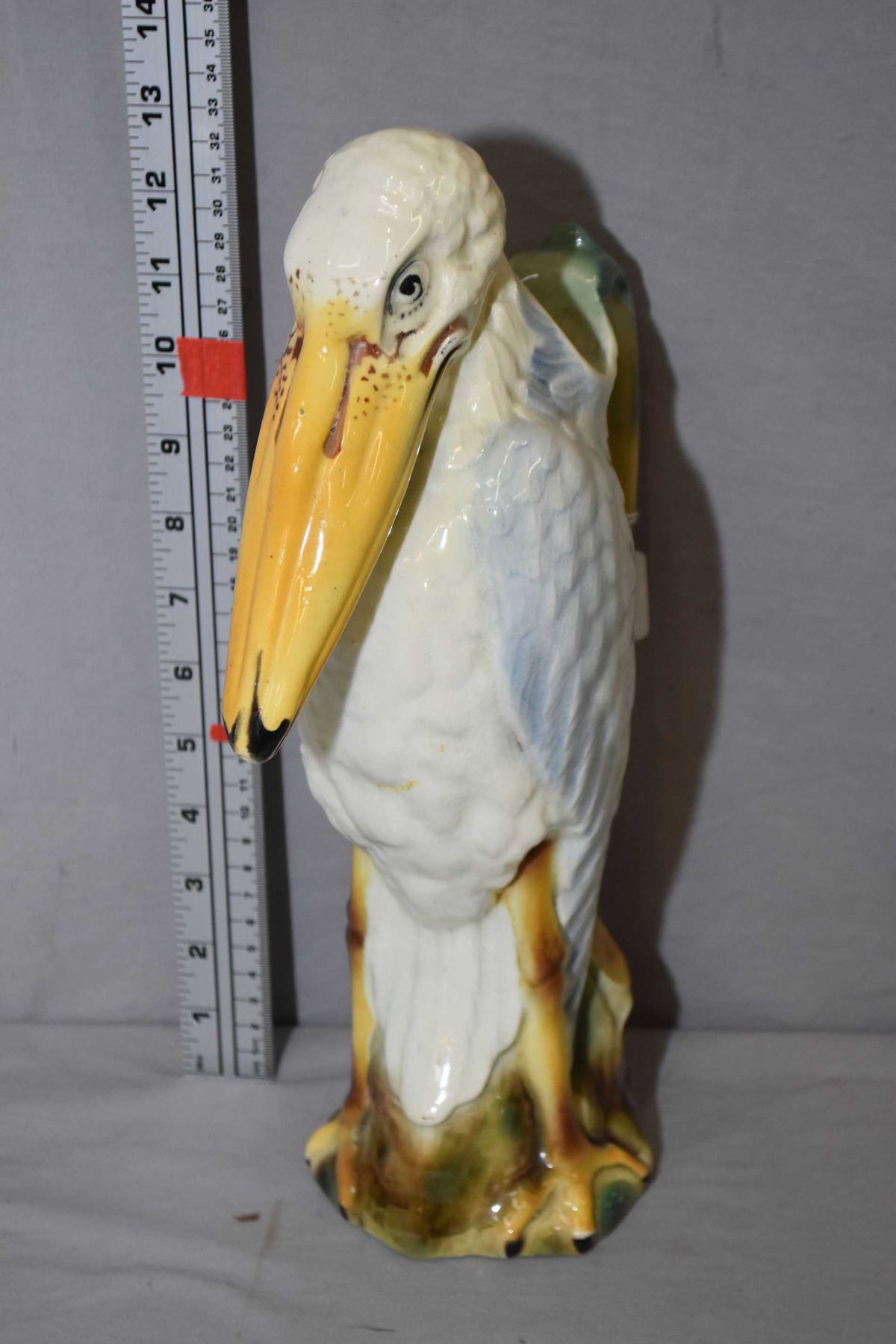 Antique French St. Clements majolica Marabou Absinthe pitcher circa 1870, 14" in height