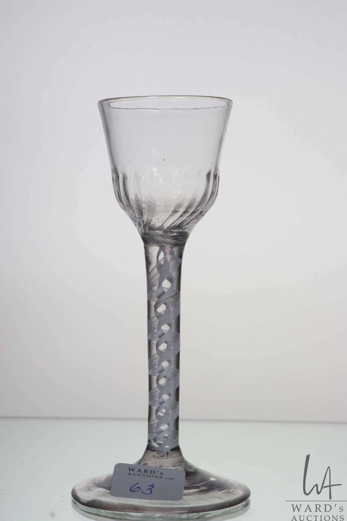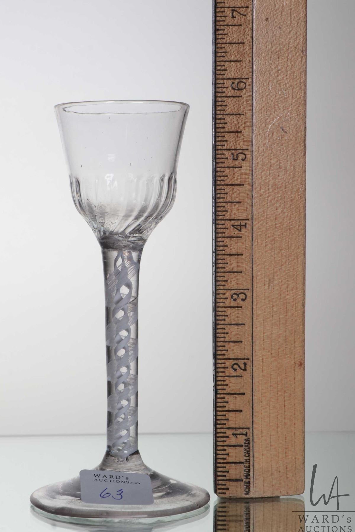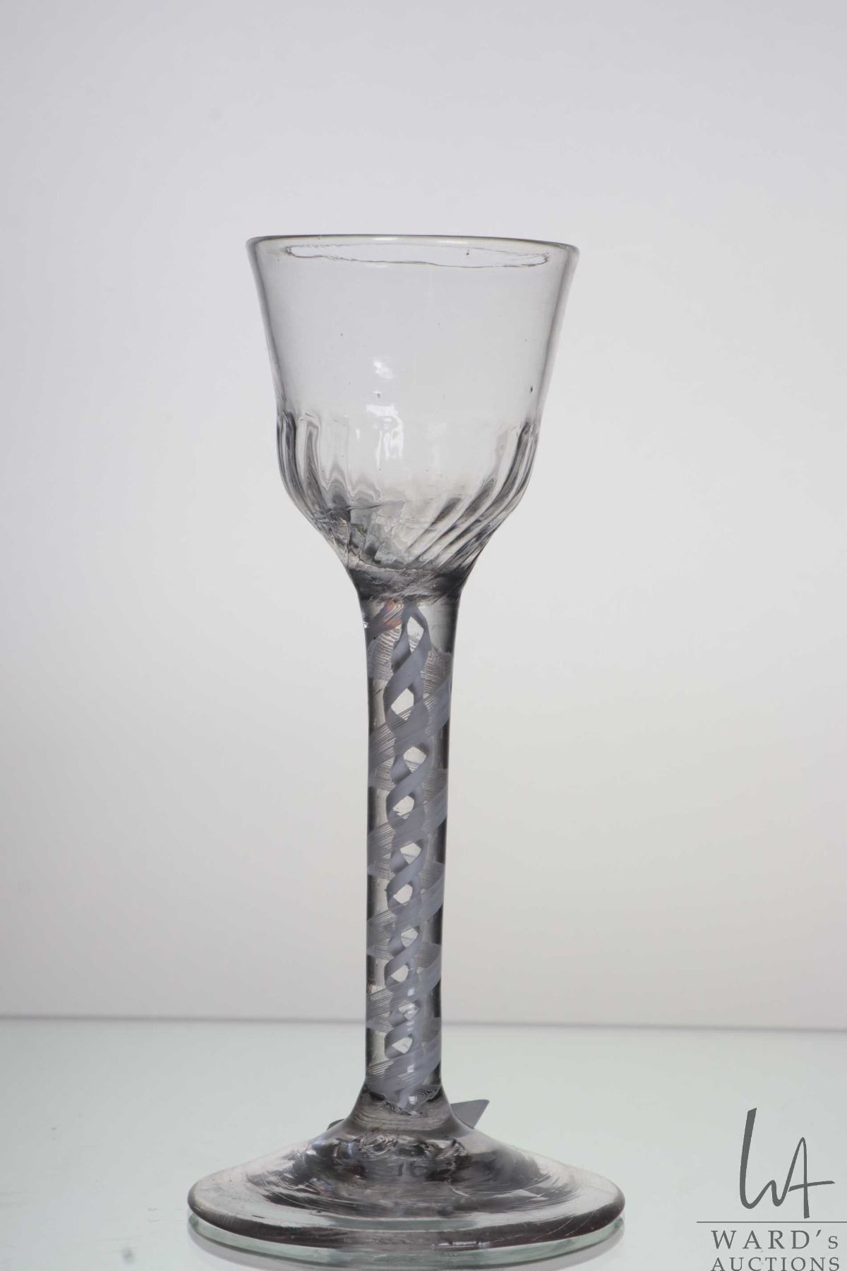 Antique Georgian cordial glass with ogee shaped bowl and white air twist stem,circa 1740's 14.1cm in height