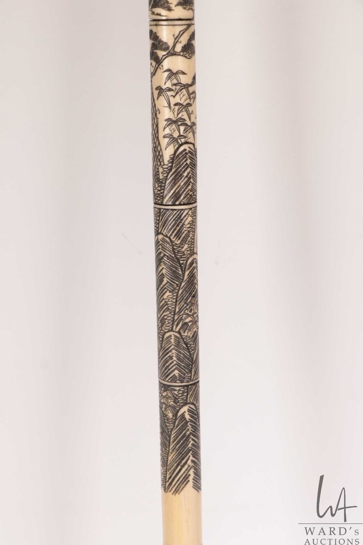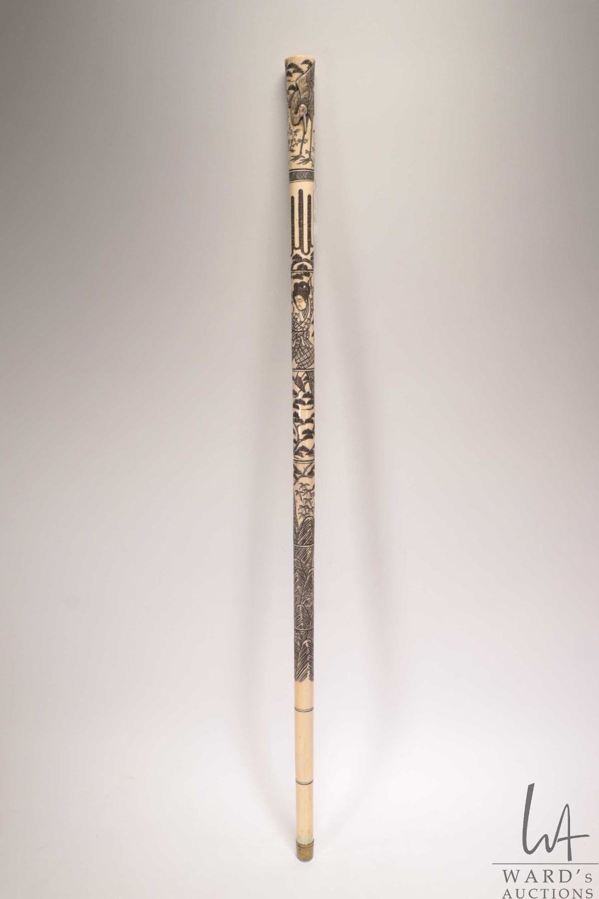 Antique Japanese hand carved bone walking stick, made up of nine intricately carved sections featuri