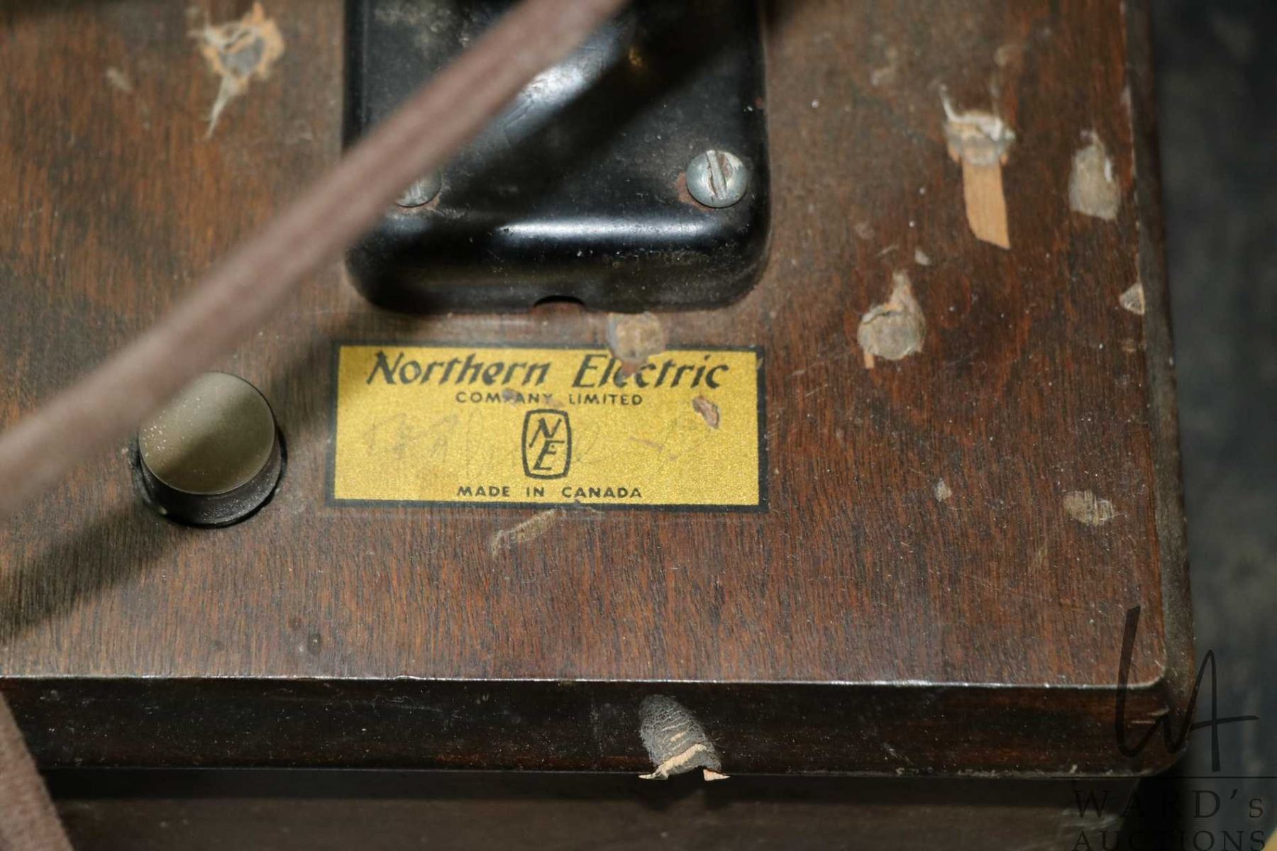 Antique Northern Electric telephone incased in with assorted other related components. Note: This lot is not available for shipping. Local pickup only