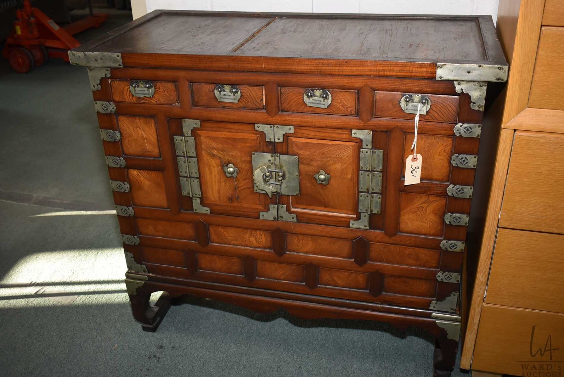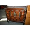 Antique Oriental multi four drawer, two door cabinet with hand hammer hardware and decoration