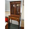 Antique Sheraton two drawer chest on tall supports with complimenting two door display hutch, each f