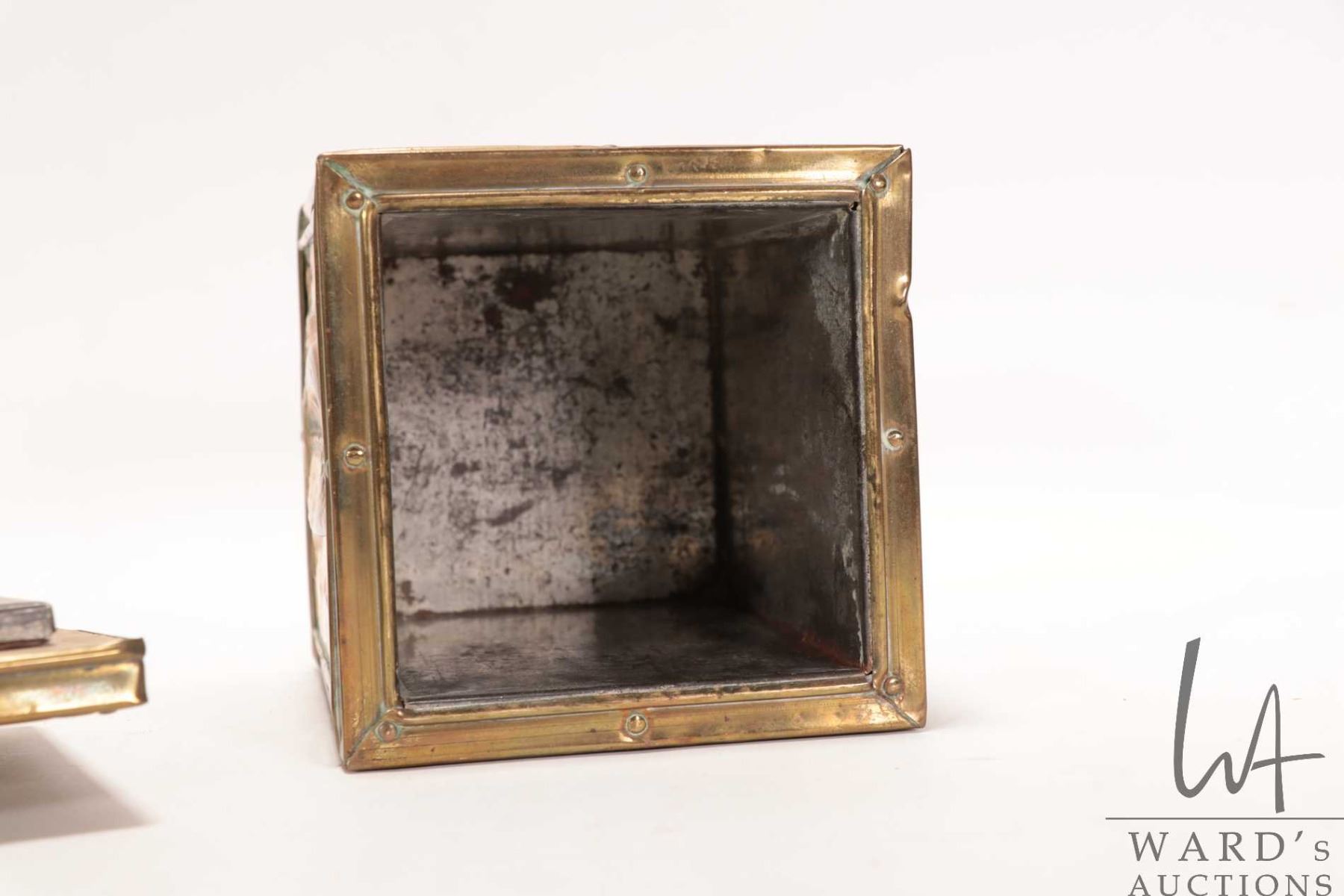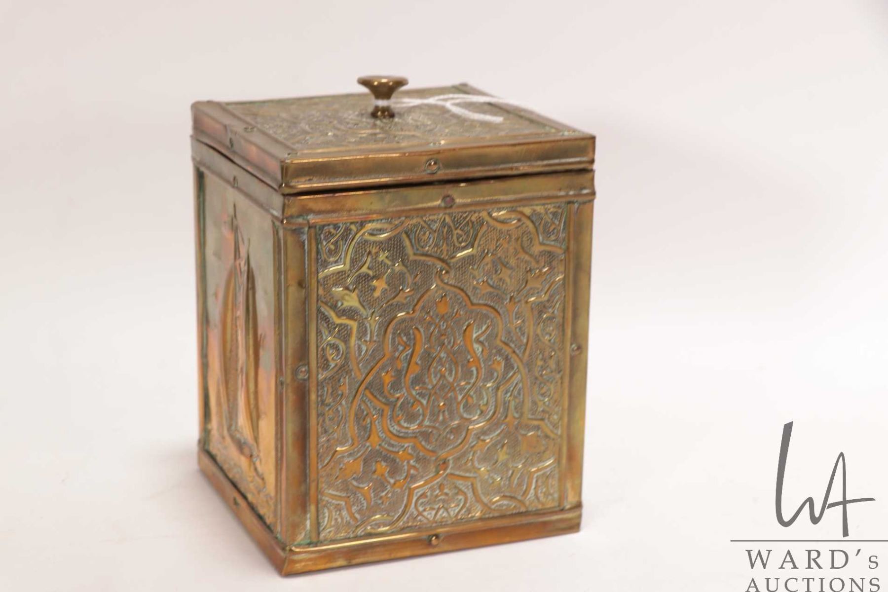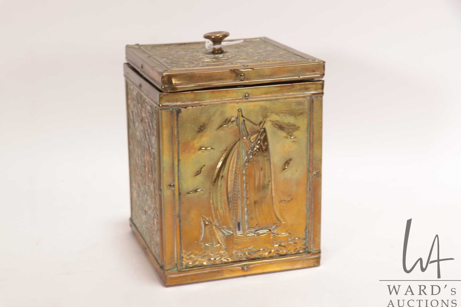 Antique Victorian brass ship's motif tea caddy 5 1/4" X 4" X 4"