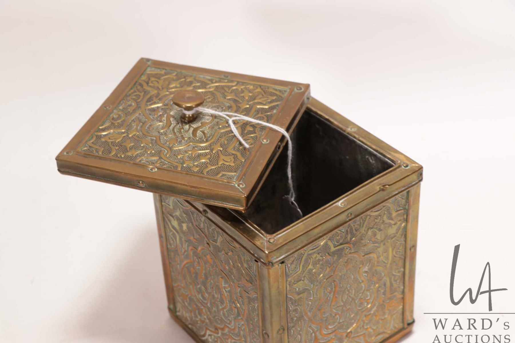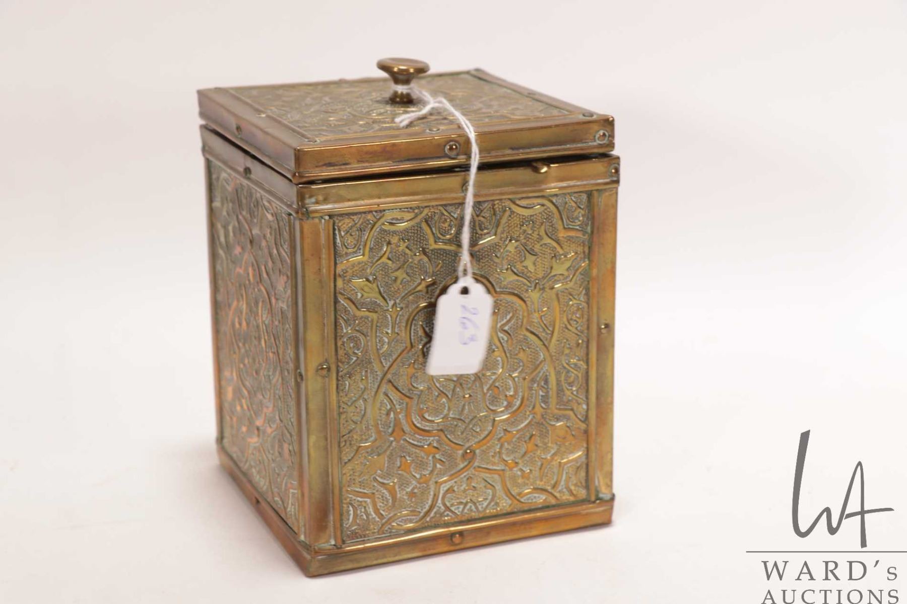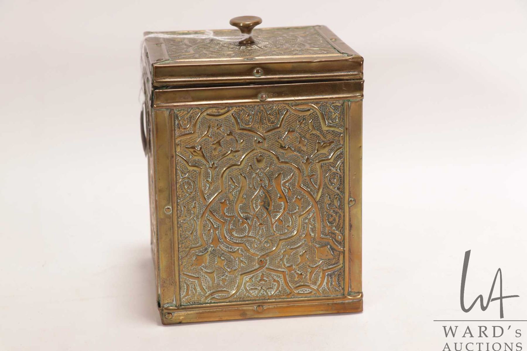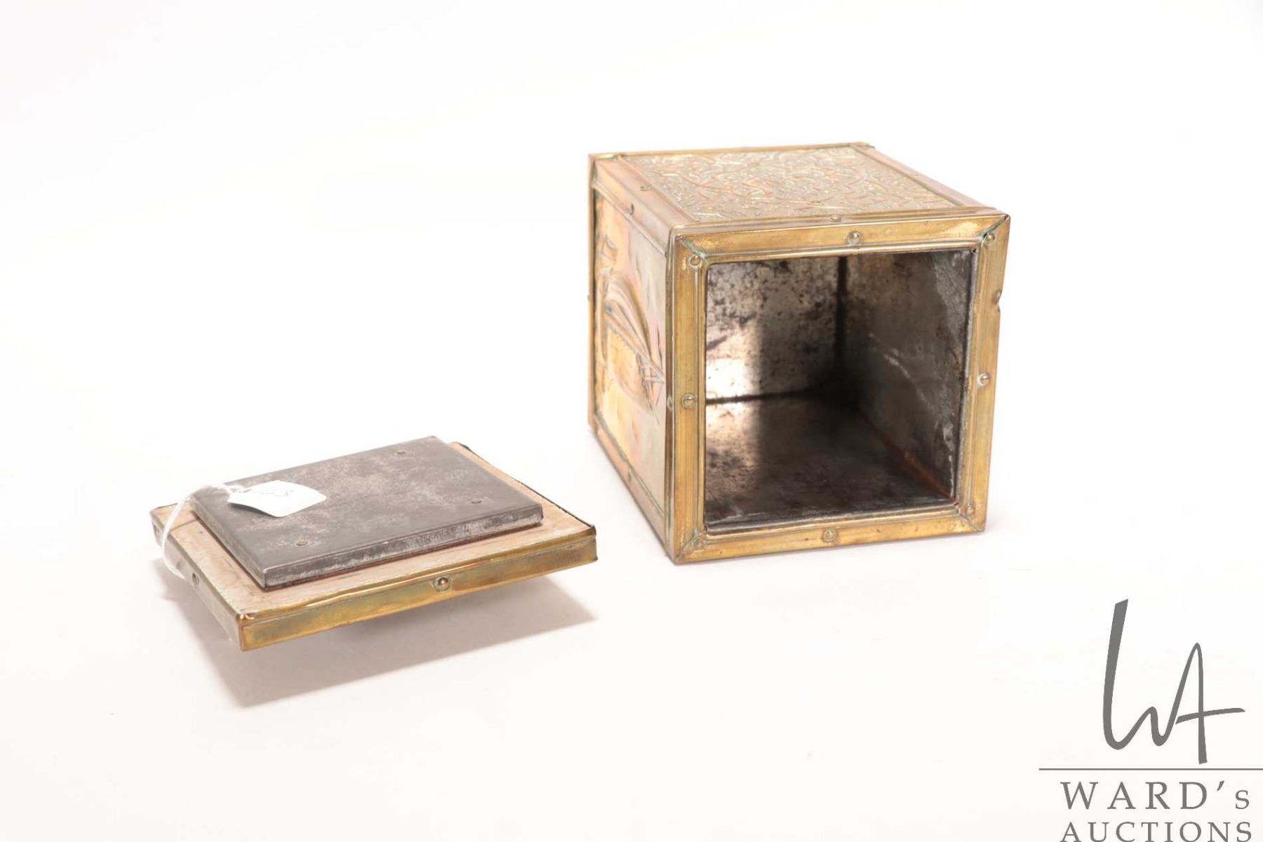 Antique Victorian brass ship's motif tea caddy 5 1/4" X 4" X 4"
