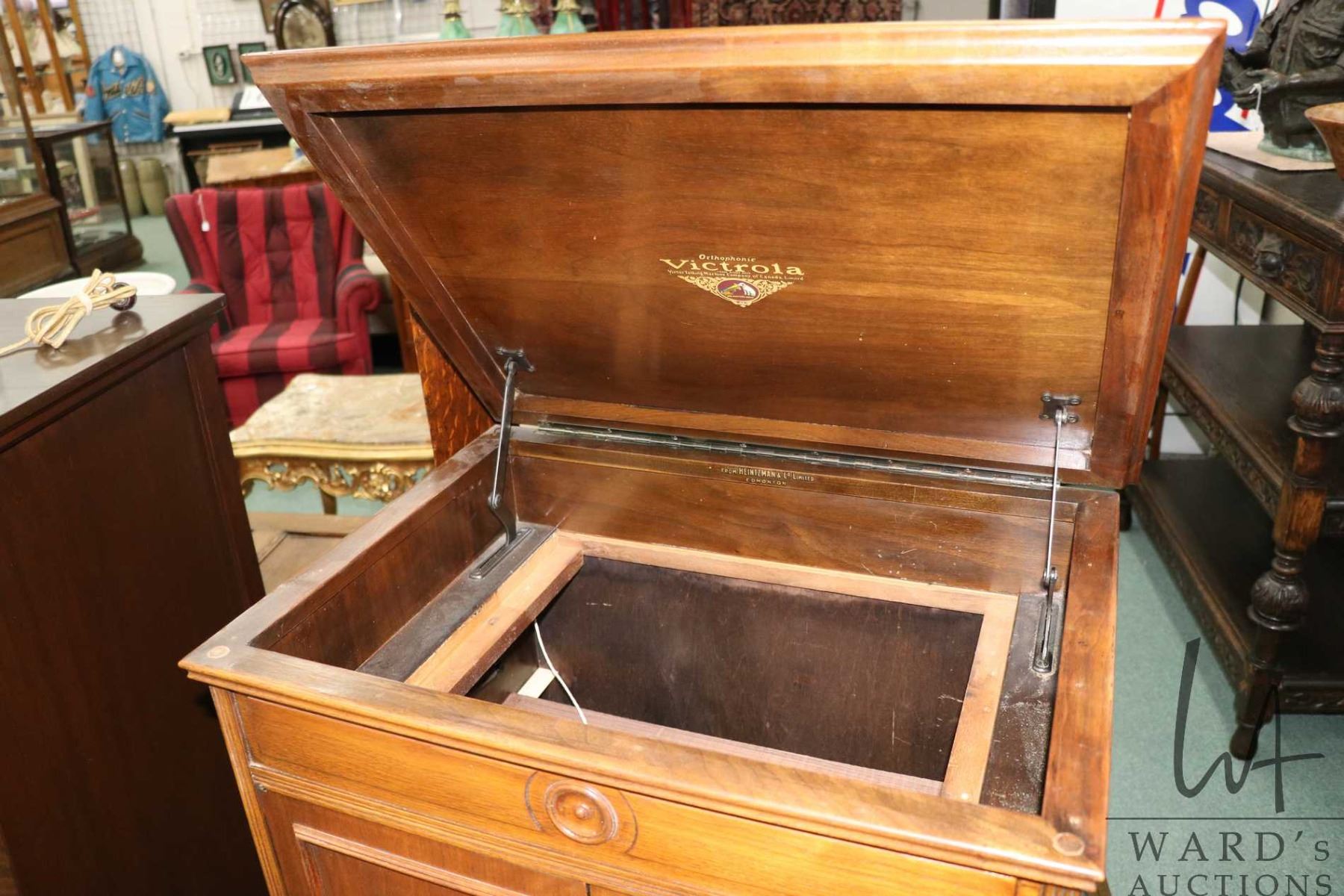 Antique Victrola gramophone cabinet repurposed into bar or storage cabinet, 42" H X 26" W X 20" D