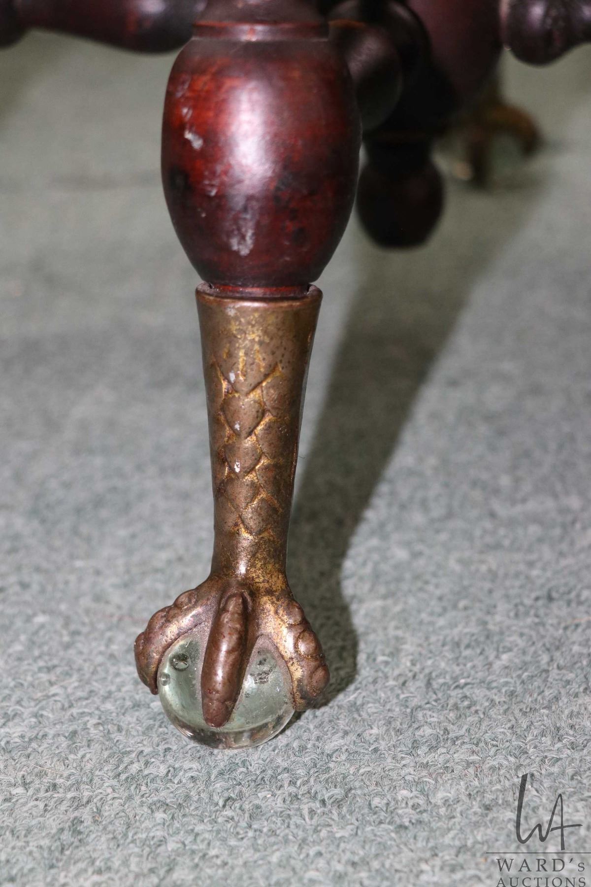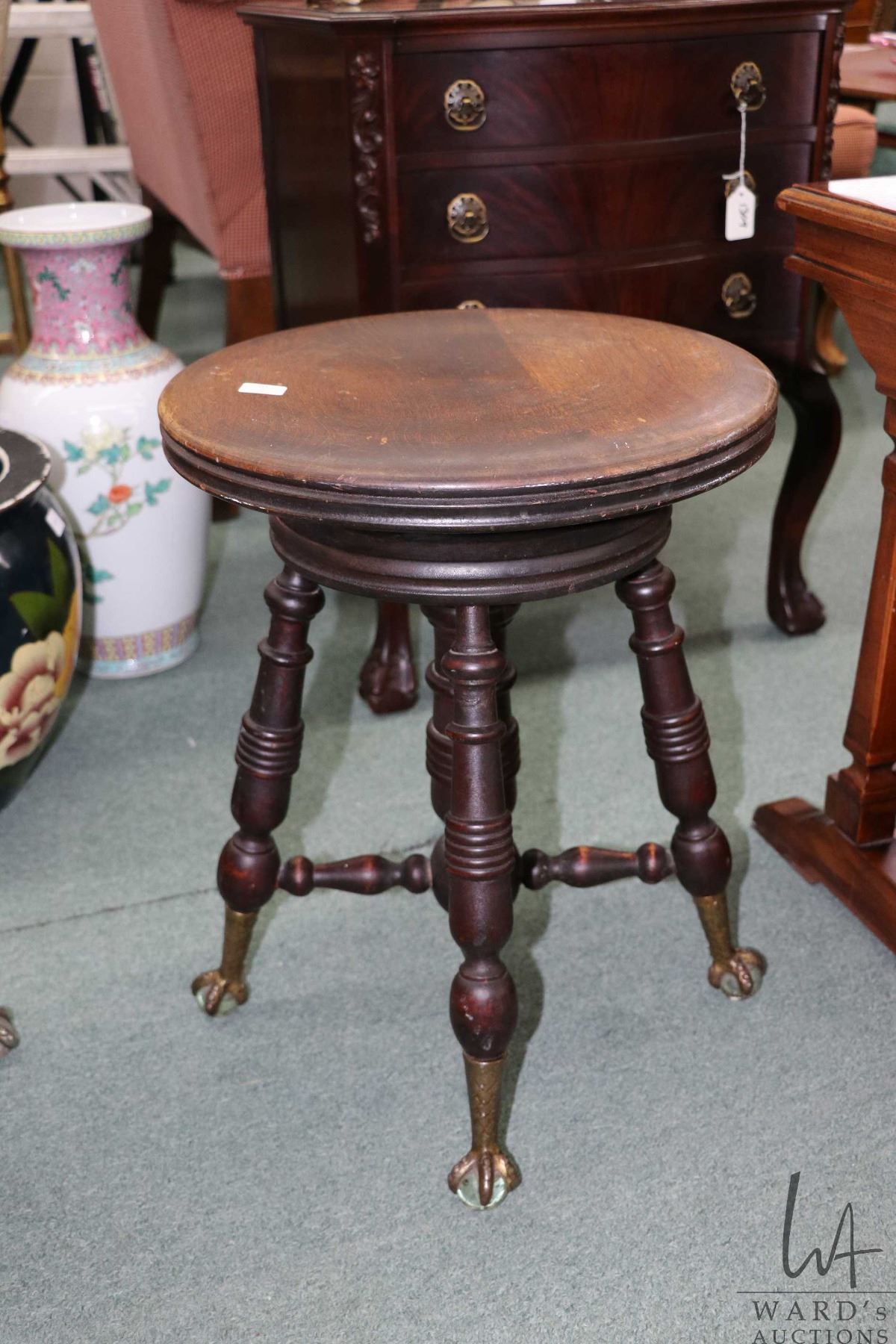 Antique adjustable height, swivel seat piano stool with cast and glass ball and claw feet
