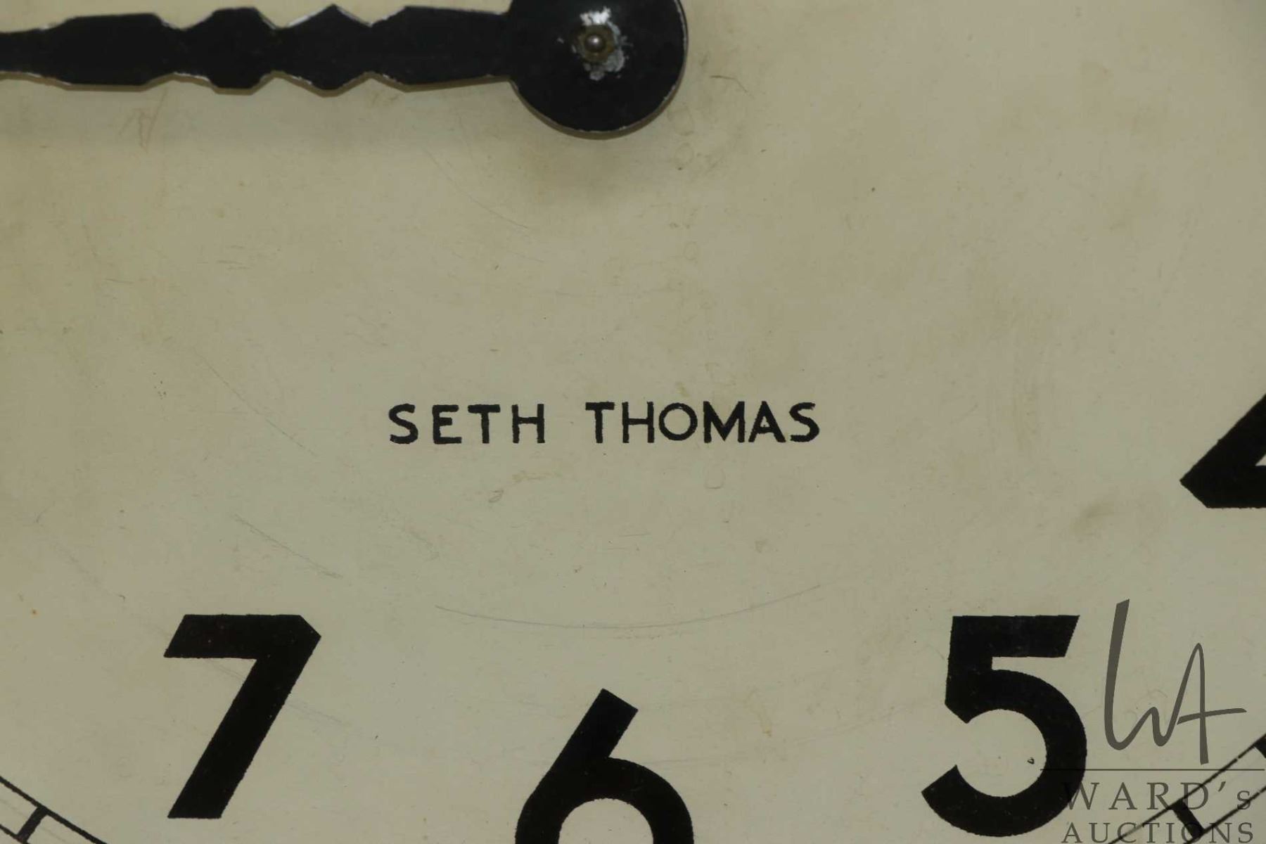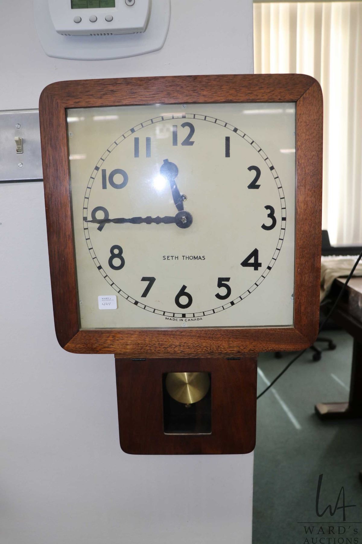 Antique art deco styl canadian made Seth Thomas wall clock with visible pendulum not working at time of cataloging. 22" high