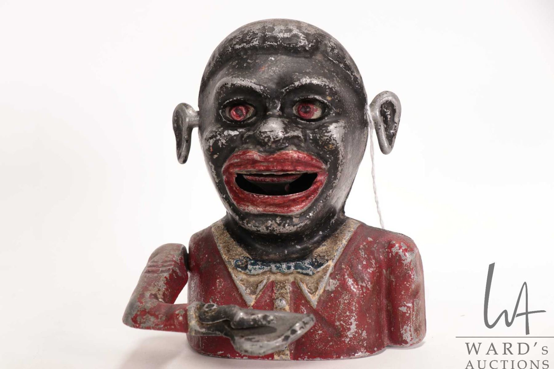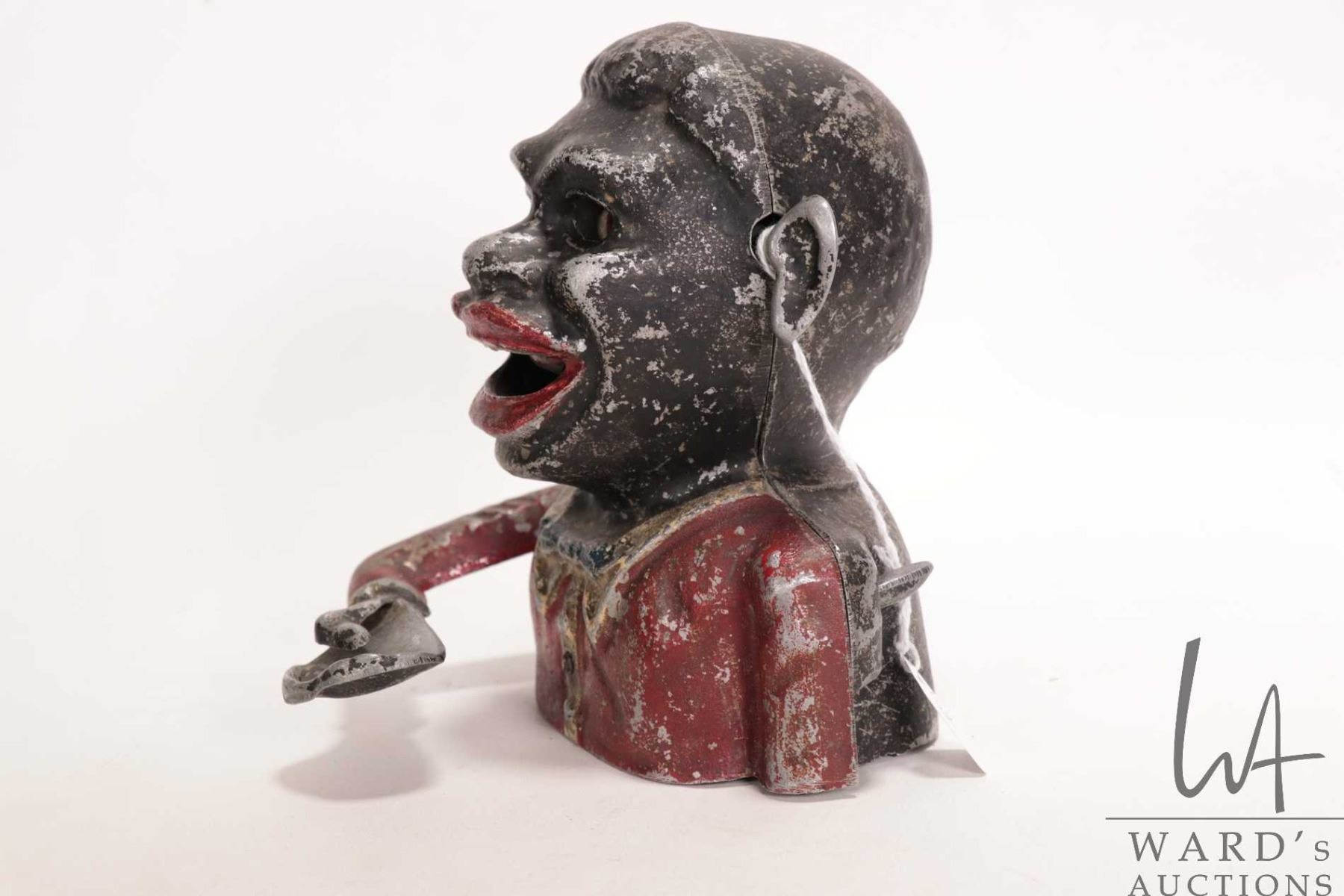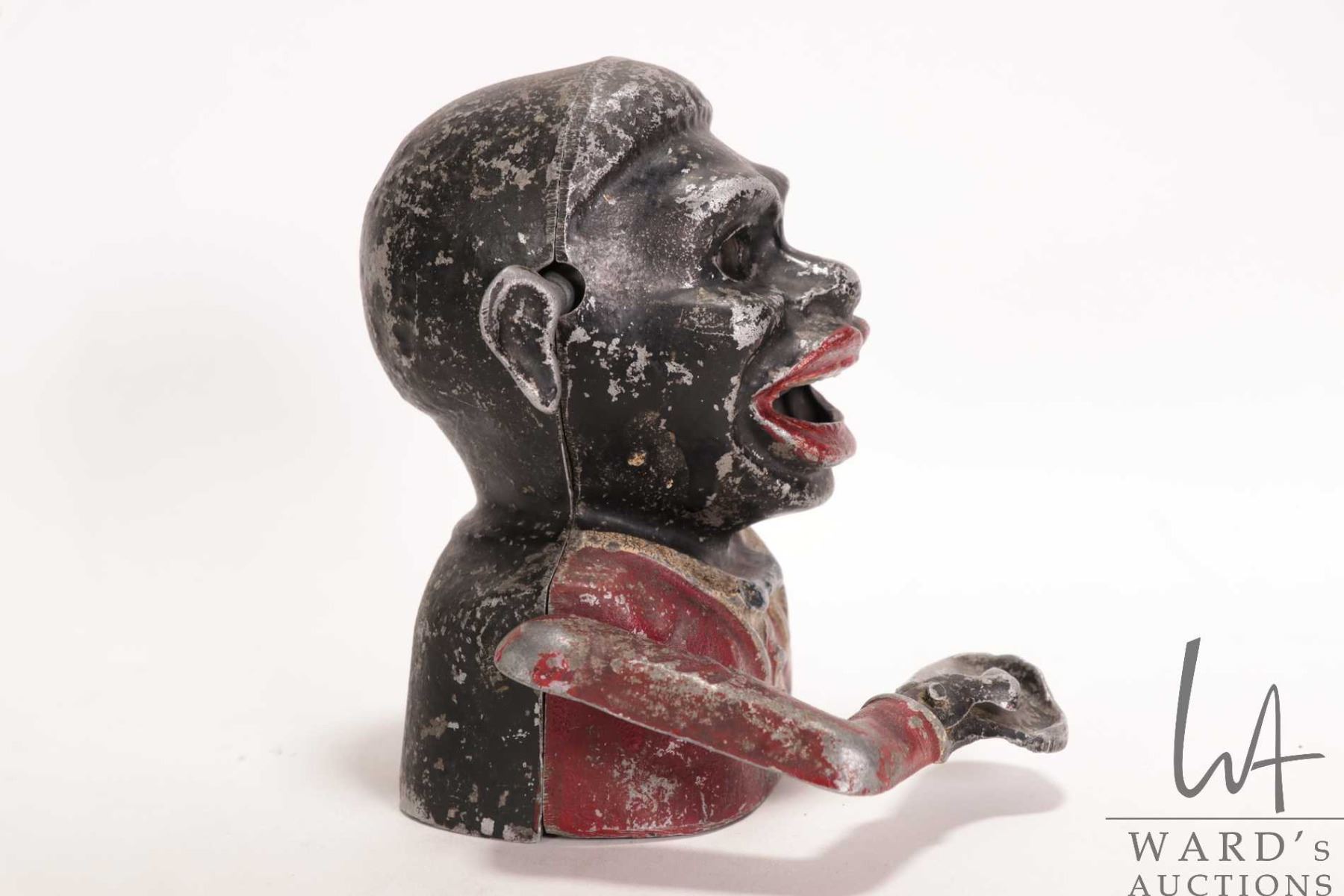 Antique black Americana mechanical money bank, 5 1/2" in height