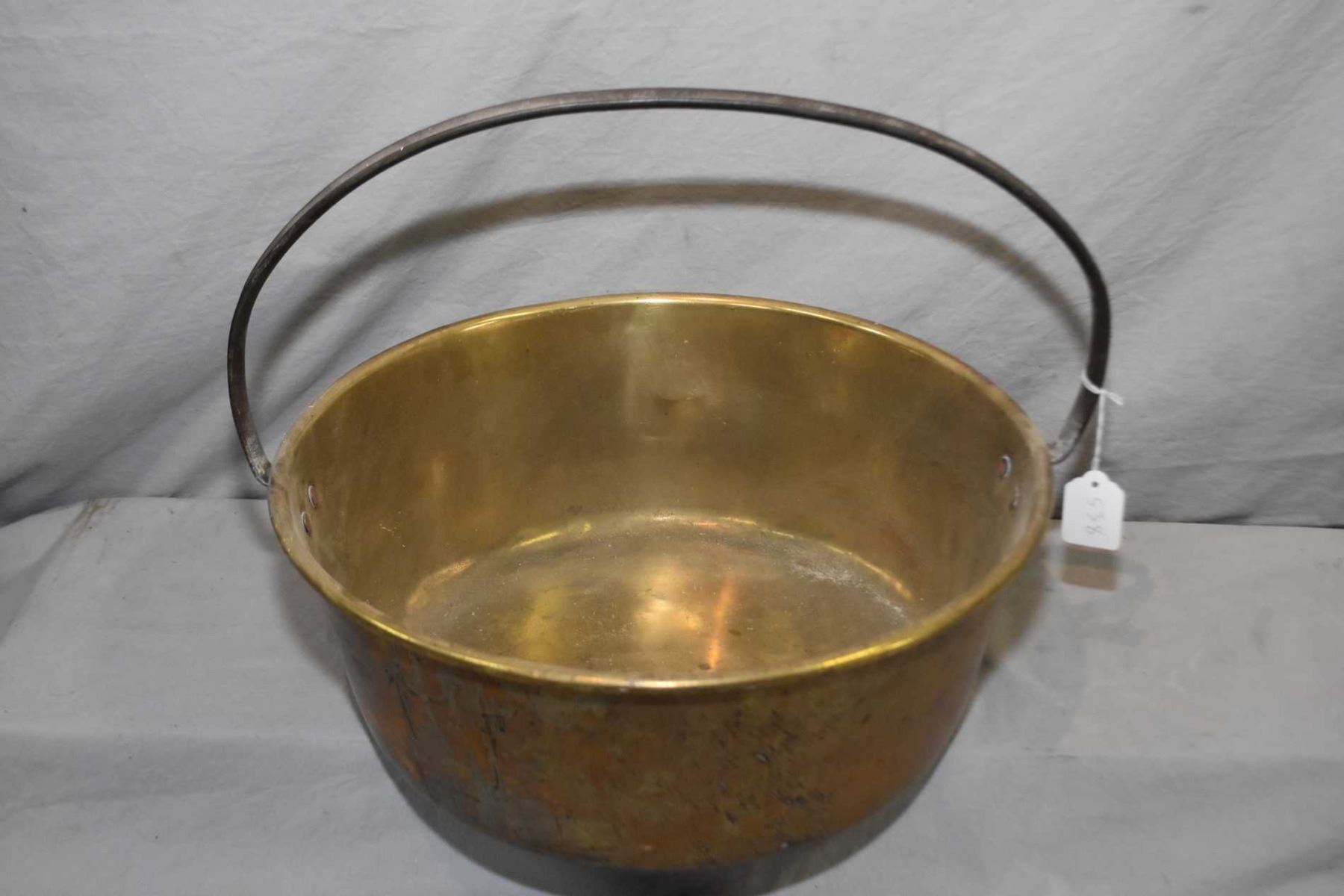 Antique brass jelly pan with hand hammered steel handle 16" in diameter